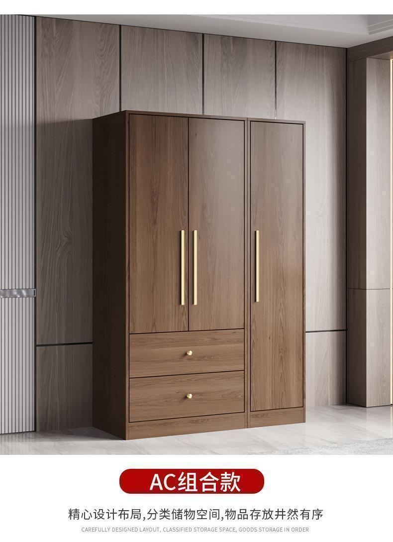 단단한 나무 옷장 통관 조합 옷장 북유럽 스타일 실용적인 침실 옷장 가정용 4 도어 임대 주택 옷장스토어 가기