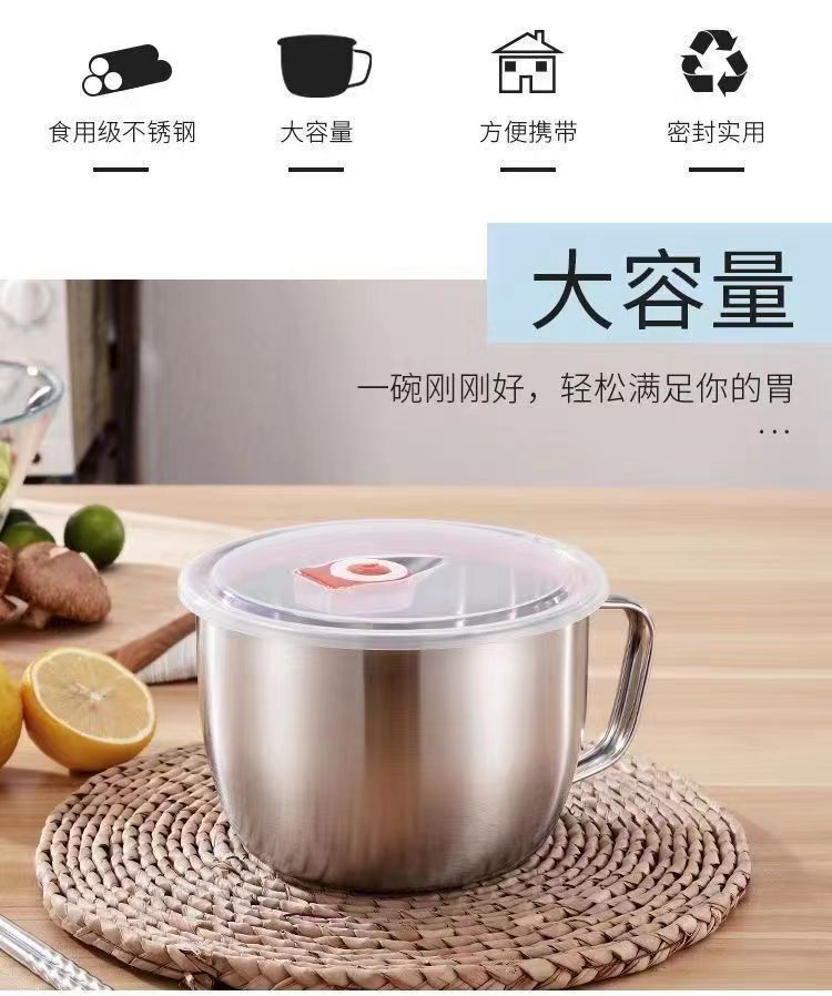 뚜껑과 손잡이가 있는 스테인레스 스틸 도시락 상자, 어린이와 학생을 위한 특수 수프 그릇 304 식품 등급 스테인레스 스틸 그릇