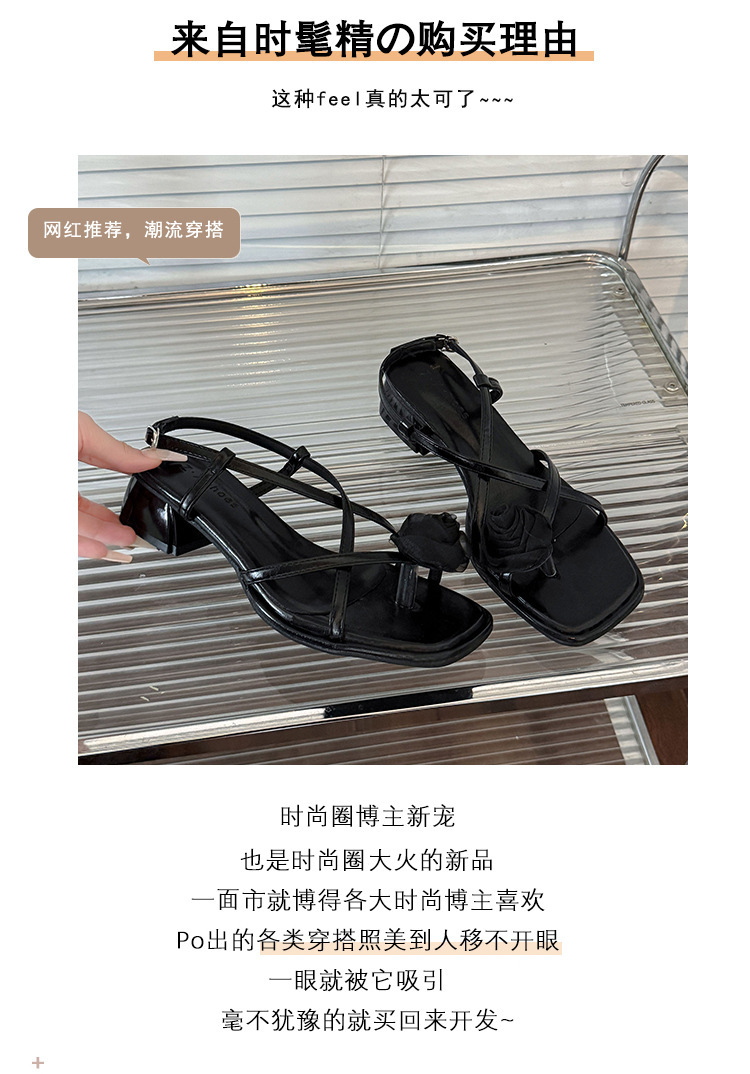 두꺼운 굽 2025 새로운 샌들 요정 스타일 여름 기질 동백 요정 스타일 휴가 얇은 스트랩 로마 신발스토어 가기