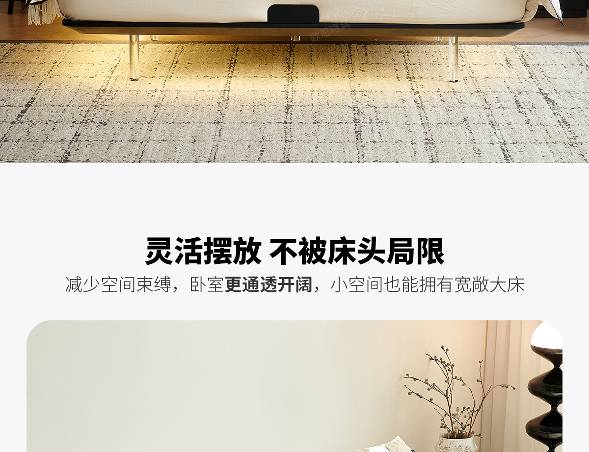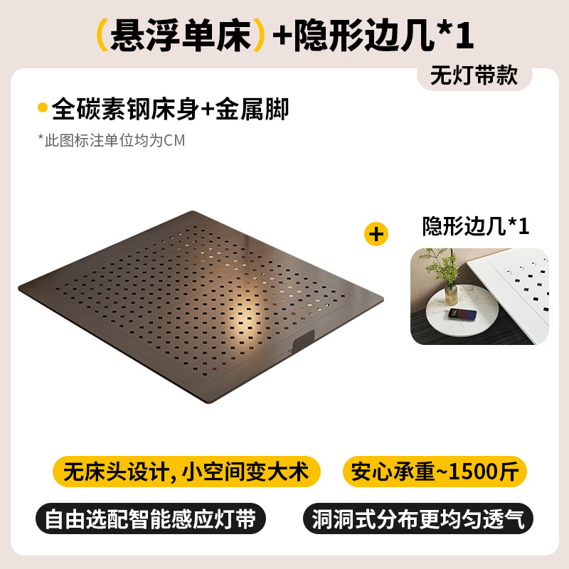 • 탄소강 침대 프레임(라이트 스트립 없음) + 금속 다리 + 보이지 않는 사이드 테이블*1