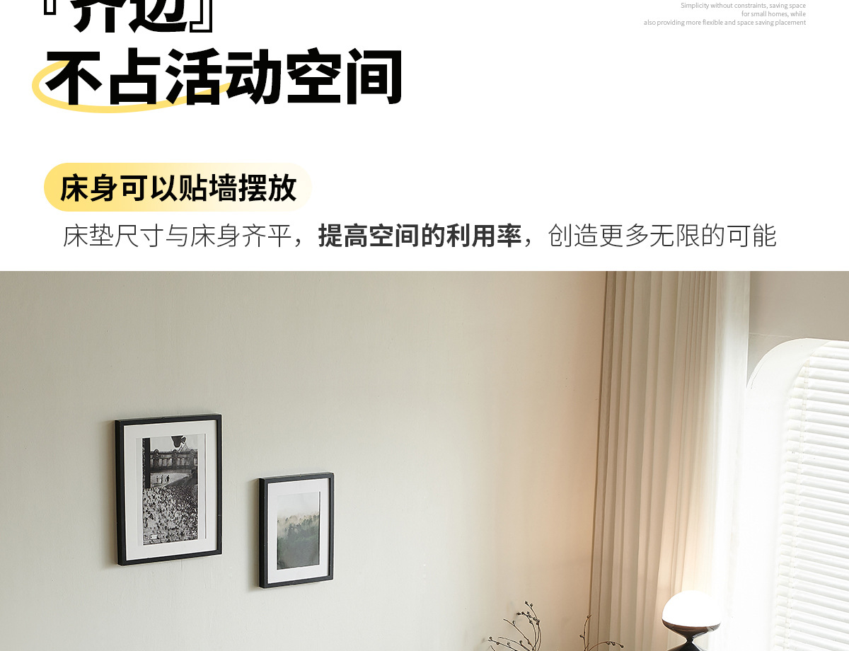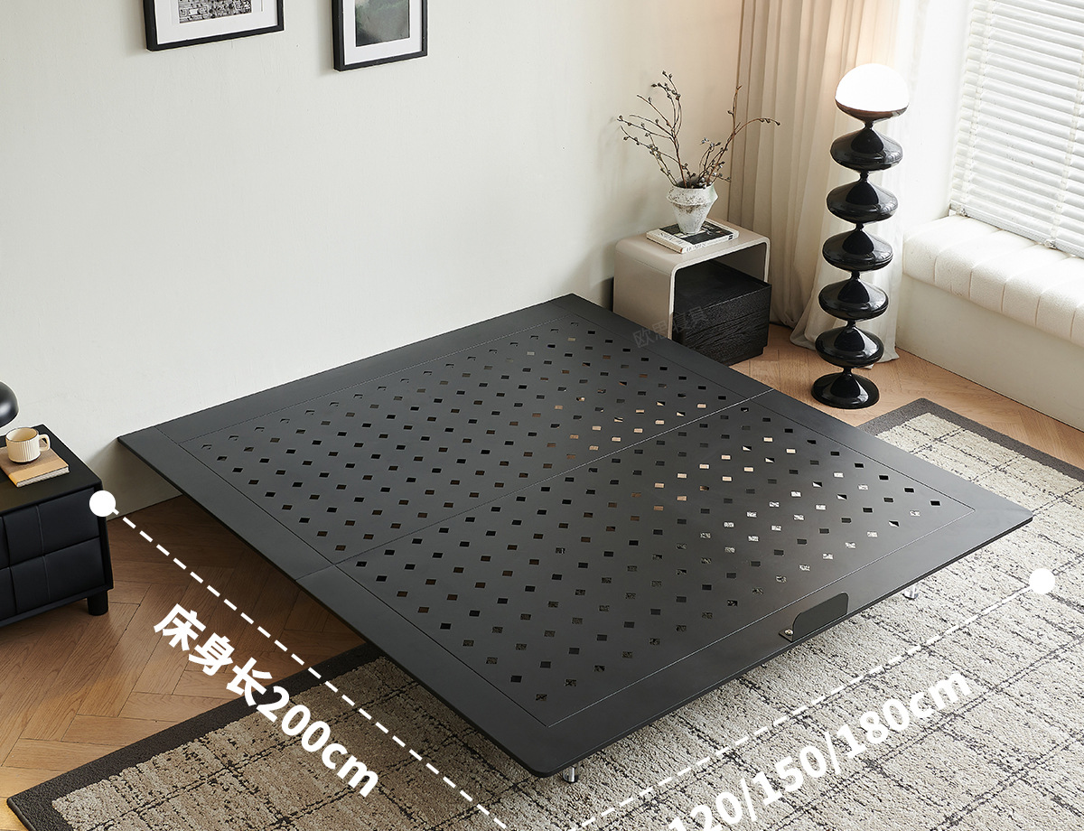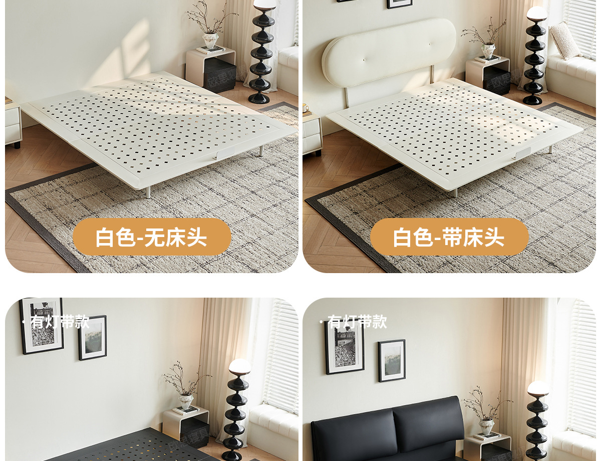 탄소강 침대 프레임, 작은 침실, 침대 옆 없음, 서스펜션 침대, 등받이 없는 침대, 와비사비 크림 스타일, 접착제 0개, Foshan