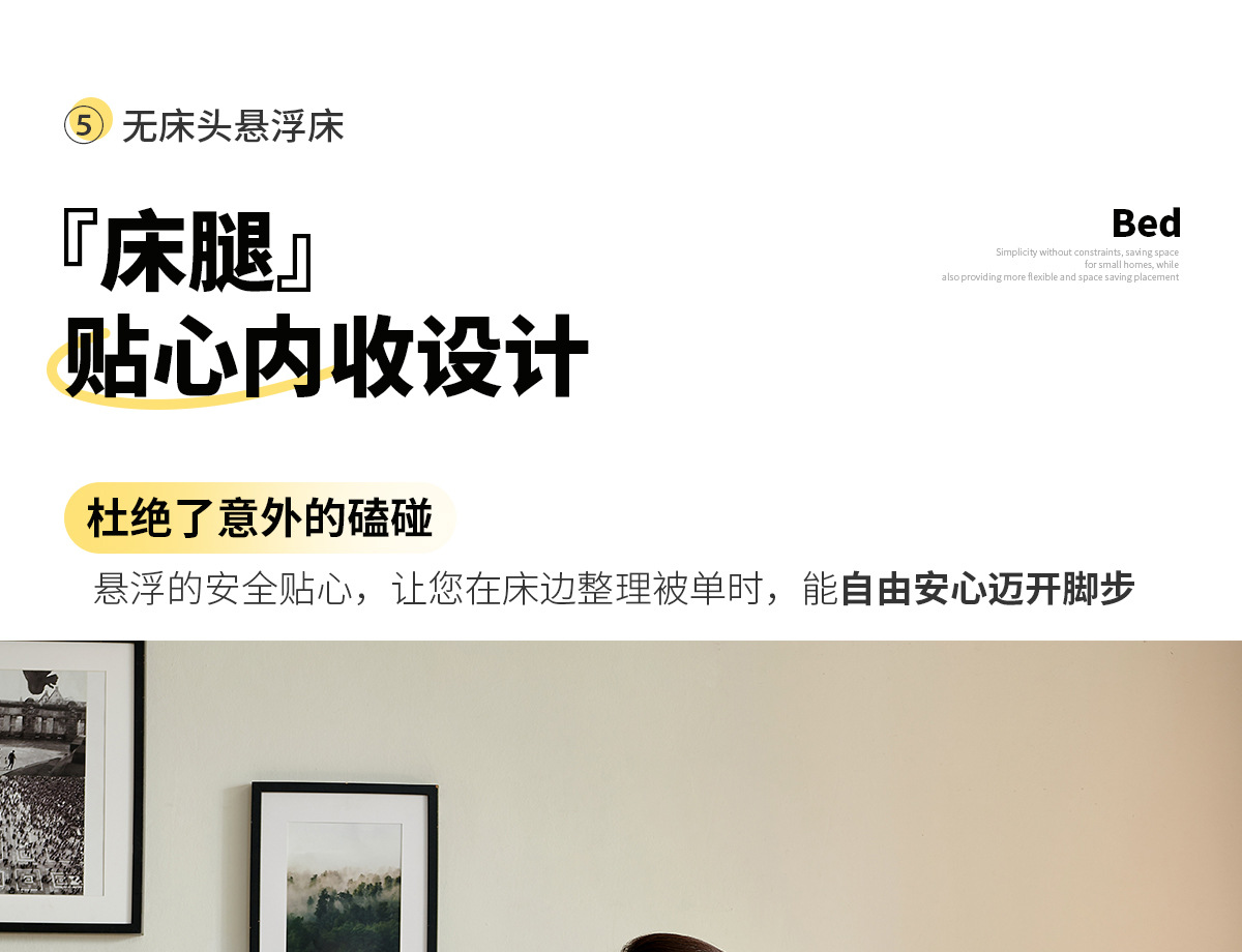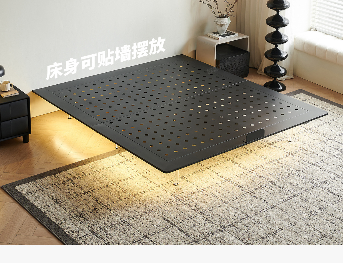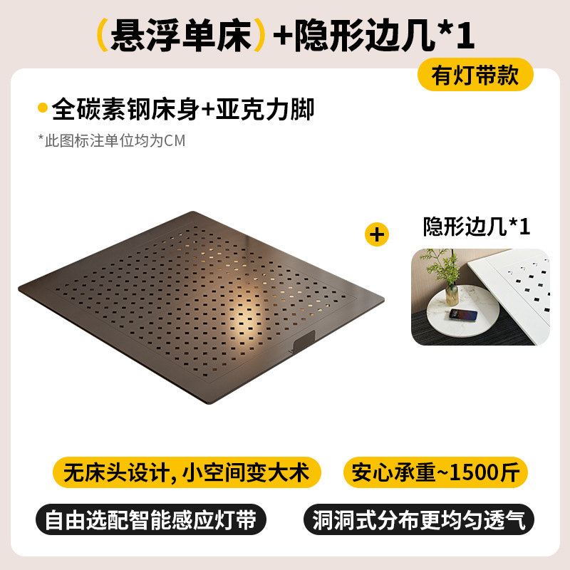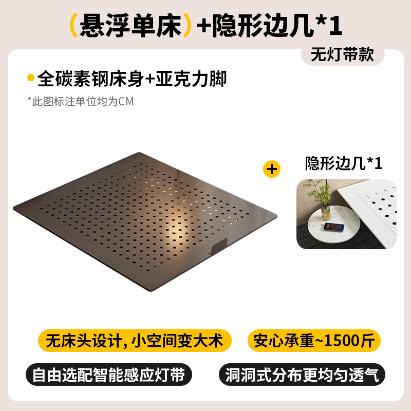 • 탄소강 침대 프레임(라이트 스트립 없음) + 아크릴 다리 + 보이지 않는 사이드 테이블*1