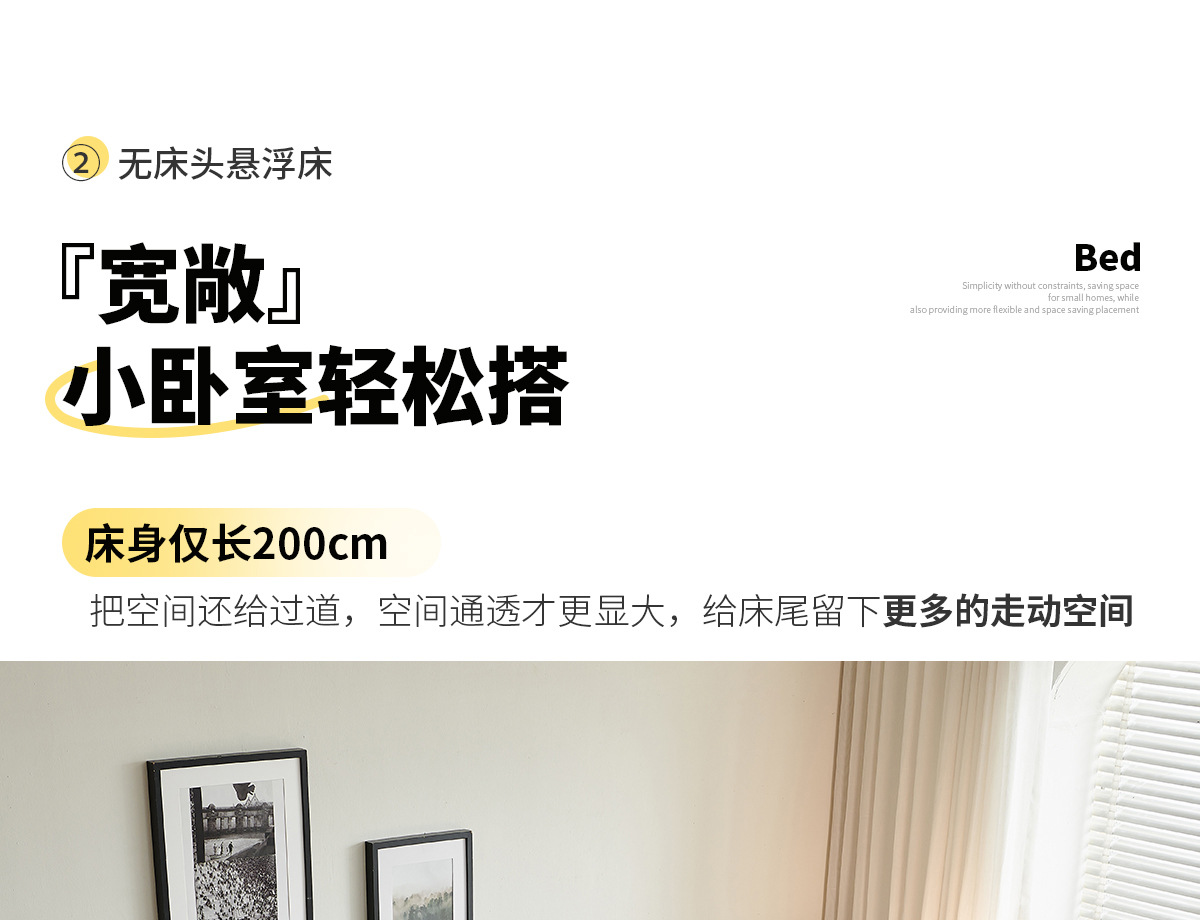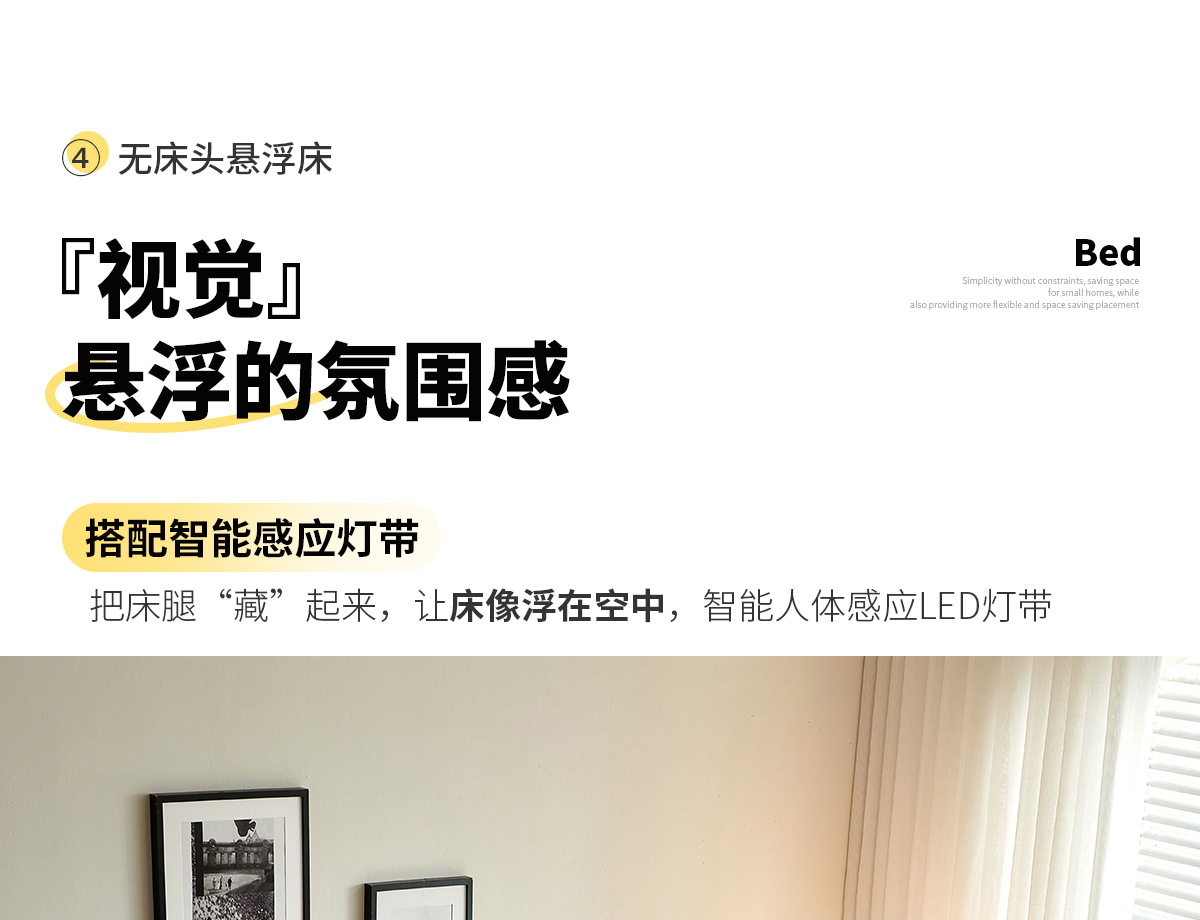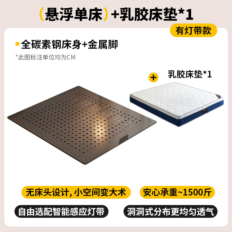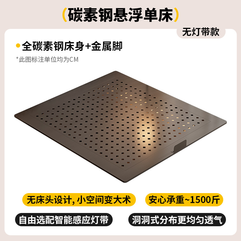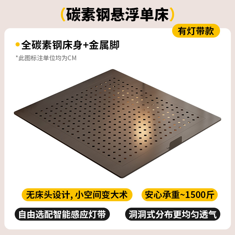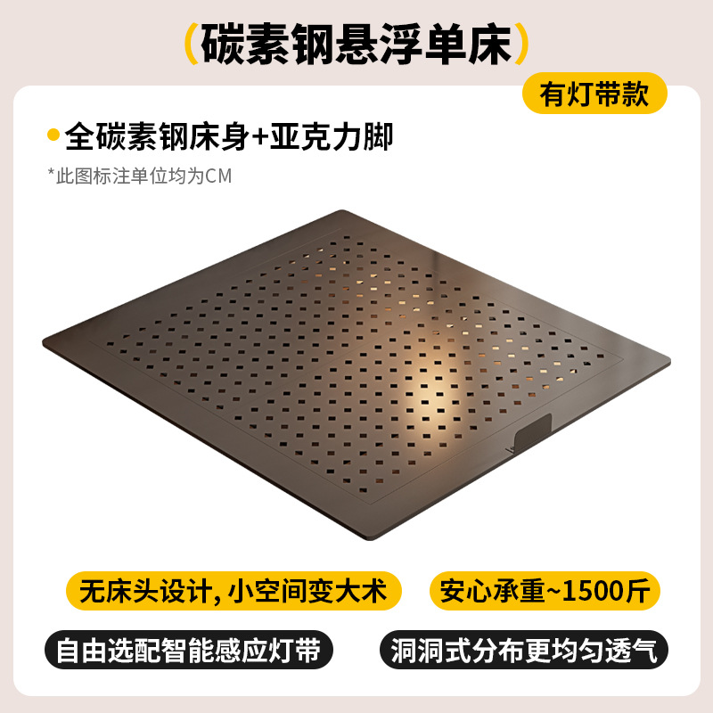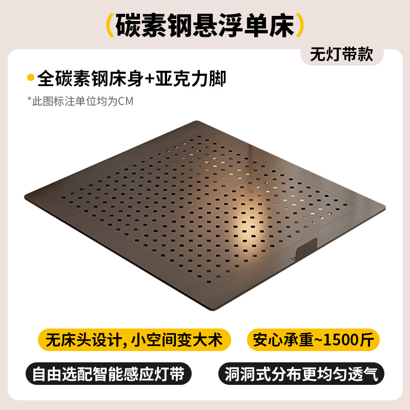• 탄소강 침대 프레임(라이트 스트립 없음) + 아크릴 서스펜션 다리
