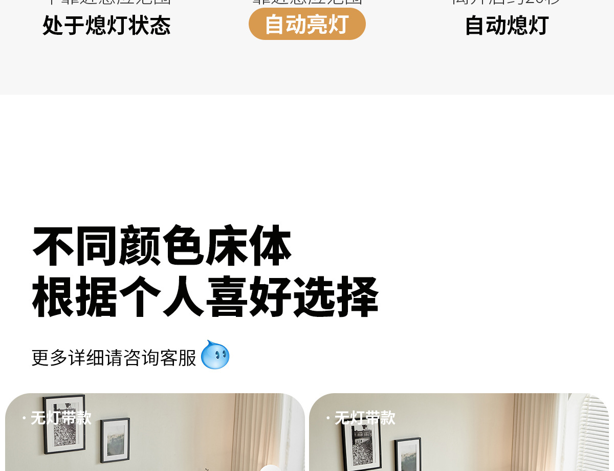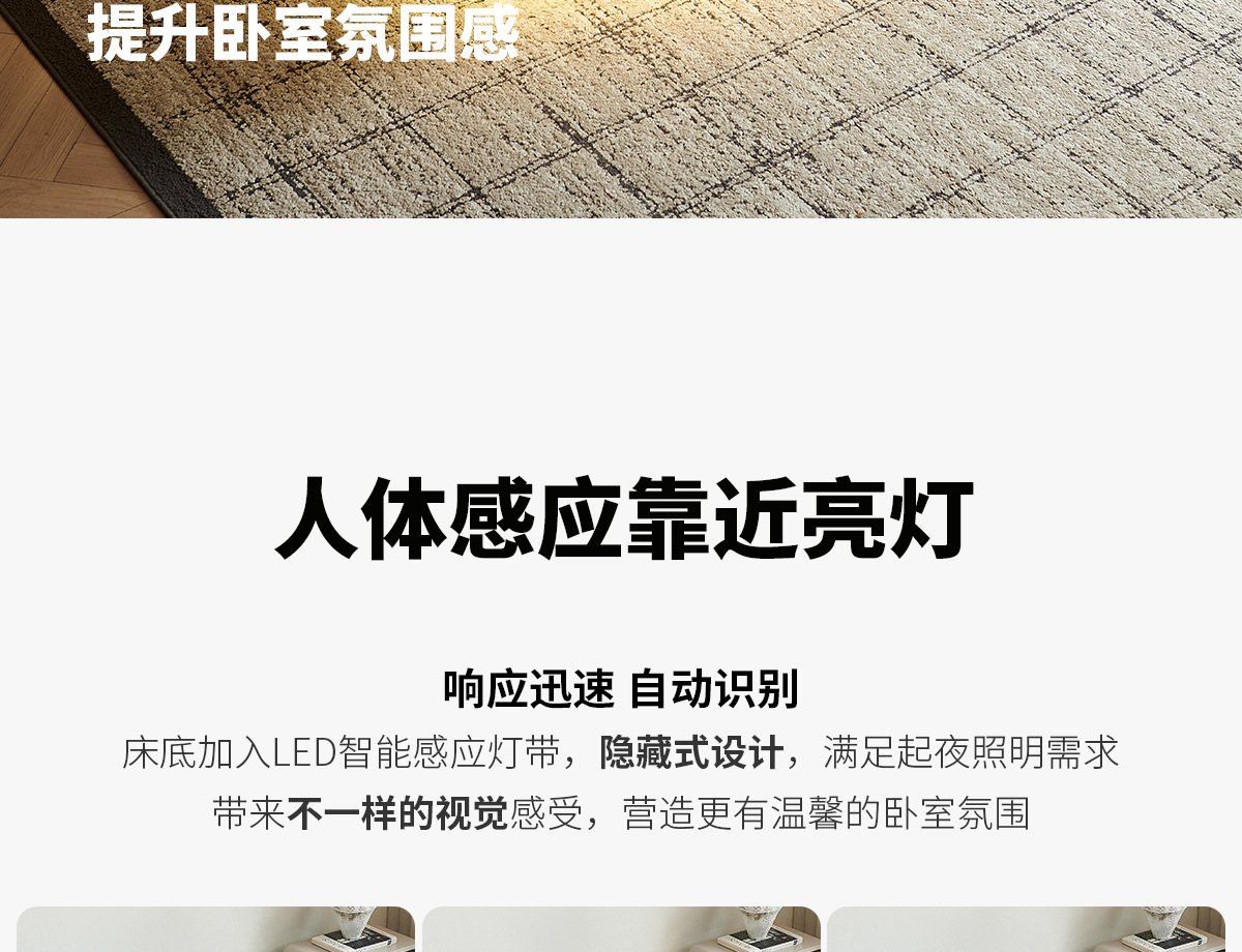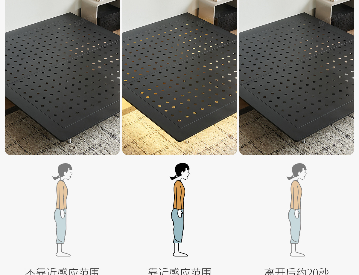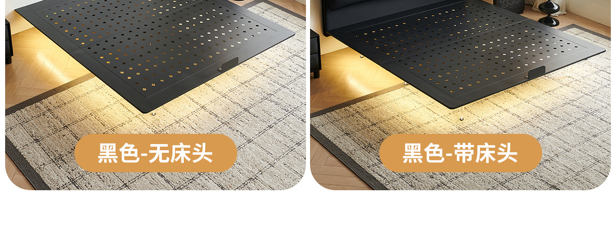 • 탄소강 침대 프레임(라이트 스트립 포함) + 금속 다리 + 보이지 않는 측면 테이블*2