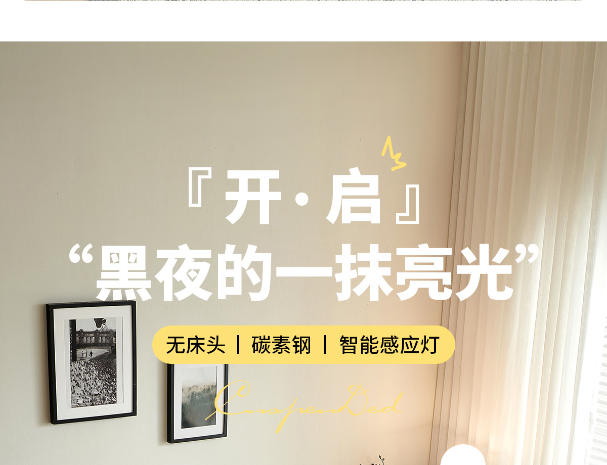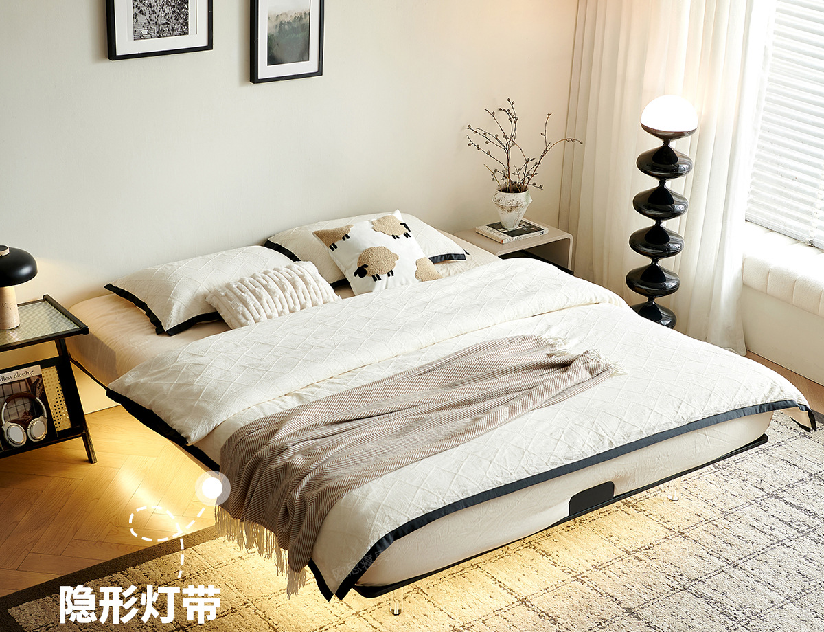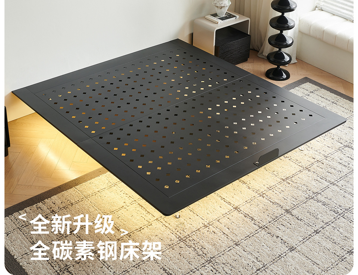 • 탄소강 침대 프레임(라이트 스트립 없음) + 금속 다리 + 보이지 않는 사이드 테이블*2