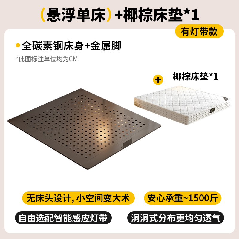 • 탄소강 침대 프레임(라이트 스트립 없음) + 금속 다리 + 코코넛 야자 매트리스