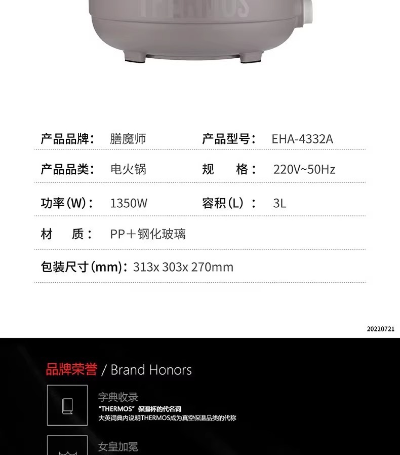 보온병 다기능 전기 밥솥 전기 전골 3L 대용량 붙지 않는 팬 건조 방지 EHA-4332A스토어 가기
