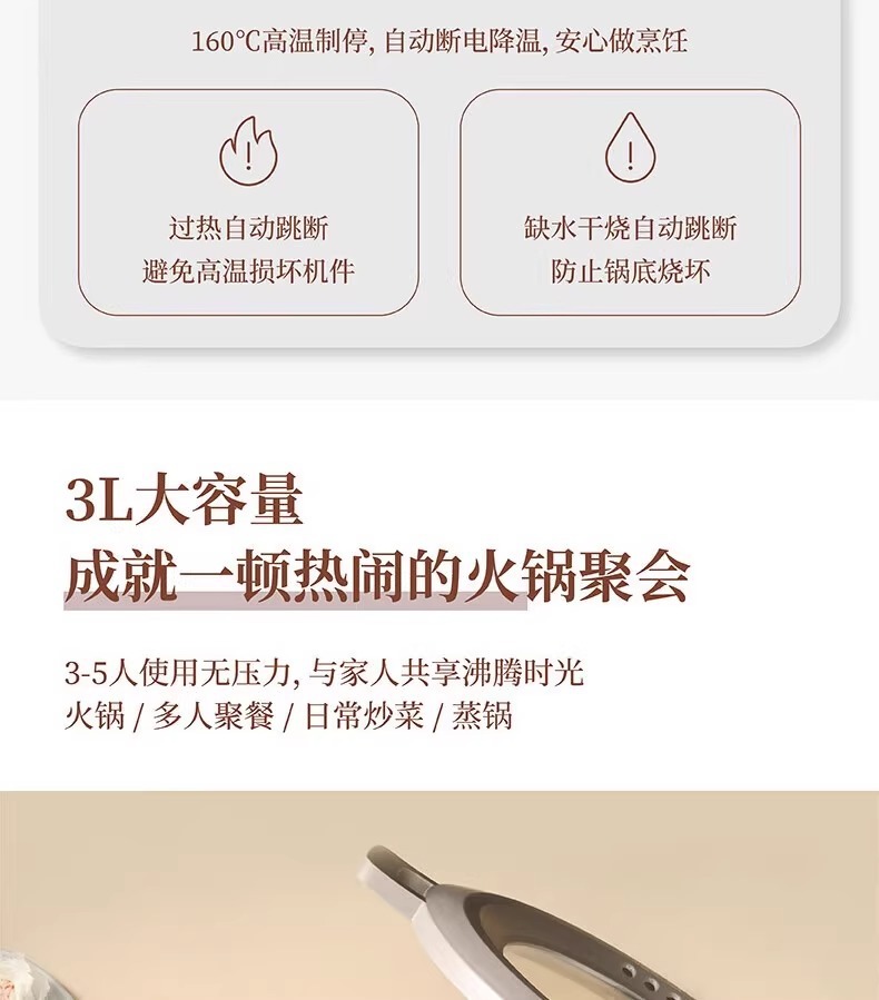 보온병 다기능 전기 밥솥 전기 전골 3L 대용량 붙지 않는 팬 건조 방지 EHA-4332A