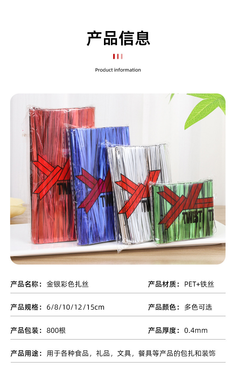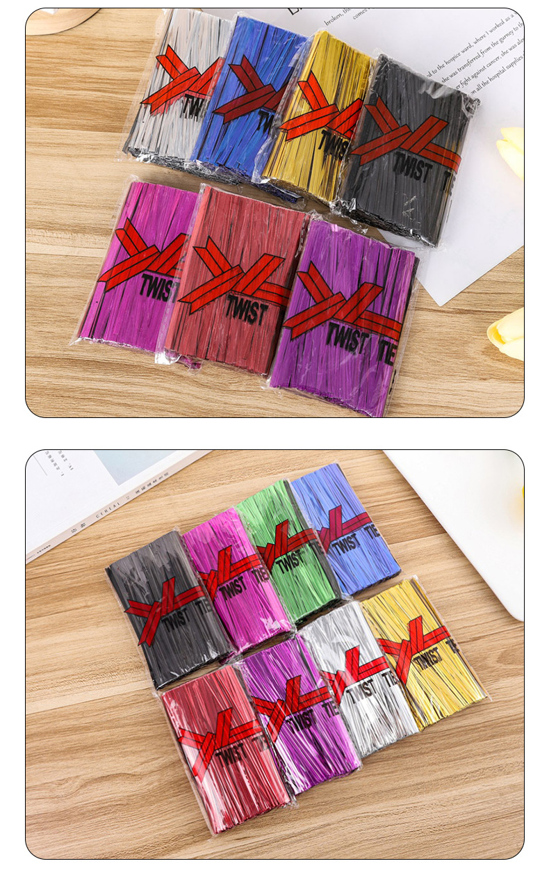새로운 6-15cm 800 와이어 타이 도매 웨딩 선물 상자 빵 가방 롤리팝 포장 골드 실버 와이어 타이스토어 가기