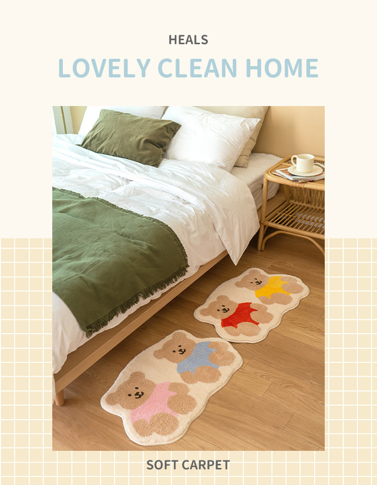 Ins 만화 곰 홈 침실 거실 카펫 욕실 입구 문 바닥 매트 입구 문 흡수성 모조 캐시미어 카펫스토어 가기