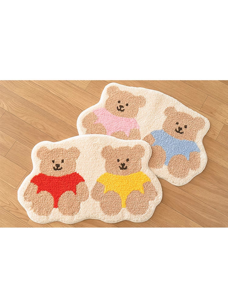 Ins 만화 곰 홈 침실 거실 카펫 욕실 입구 문 바닥 매트 입구 문 흡수성 모조 캐시미어 카펫