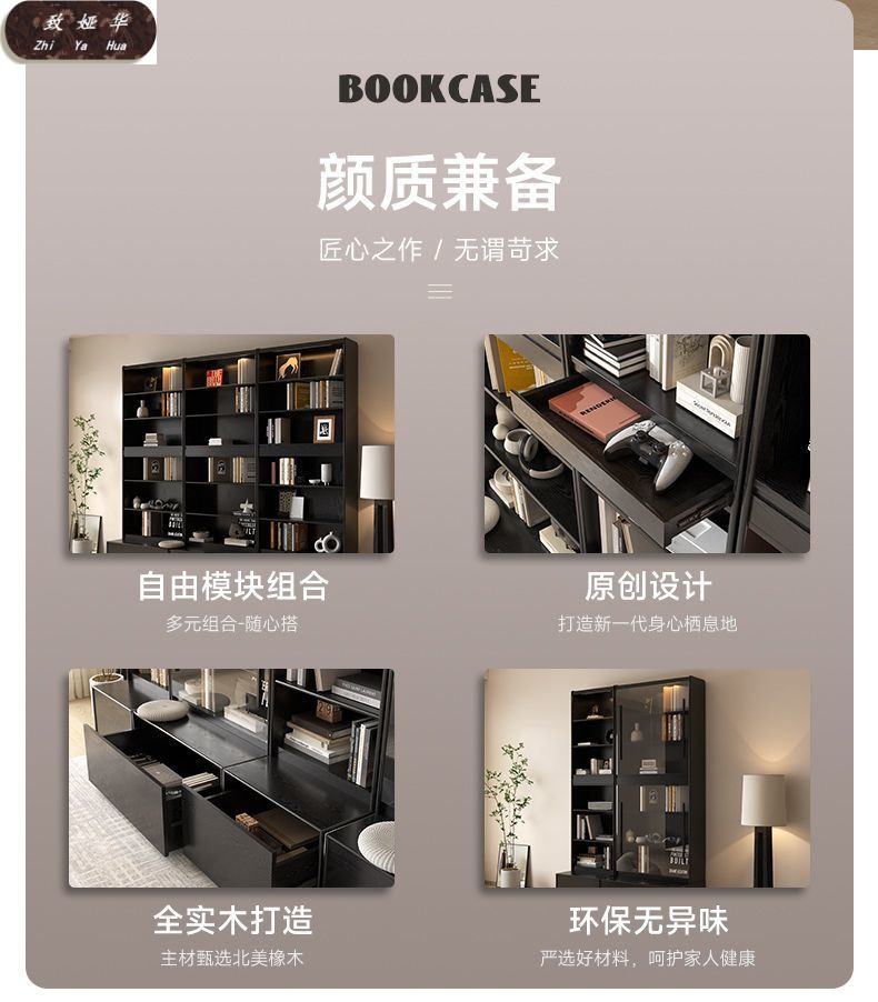 바닥에서 천장까지 올인원 사무실 서재 캐비닛, 원목 오크 카운터북, 책장, 수납장, 수납선반, 책장스토어 가기