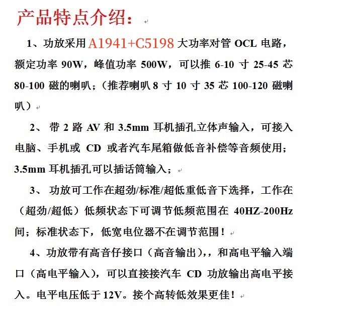 높은 전기 입력 500W 순수 저음 12V24V 전력 증폭기 고전력 마더 보드 8-12inch 자동차 서브 우퍼 코어
