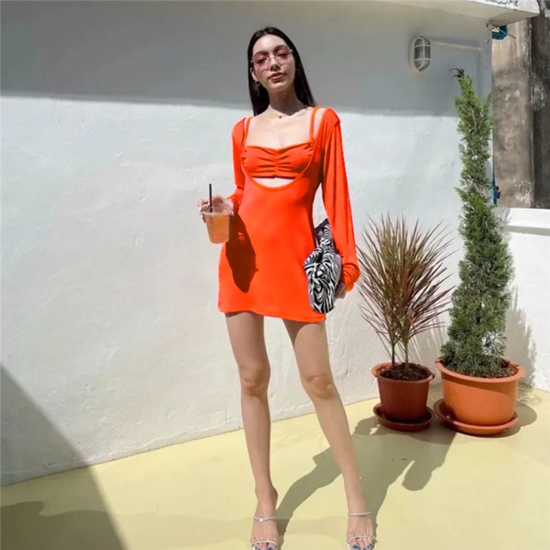 2025 신형 백리스 긴팔 자외선 차단 수영복 솔리드 컬러 대형 보수적 살 커버 슬리밍 스커트 원피스 수영복스토어 가기