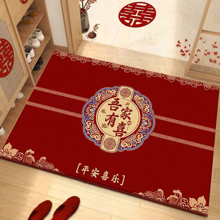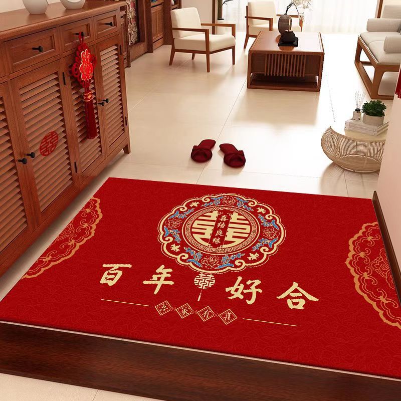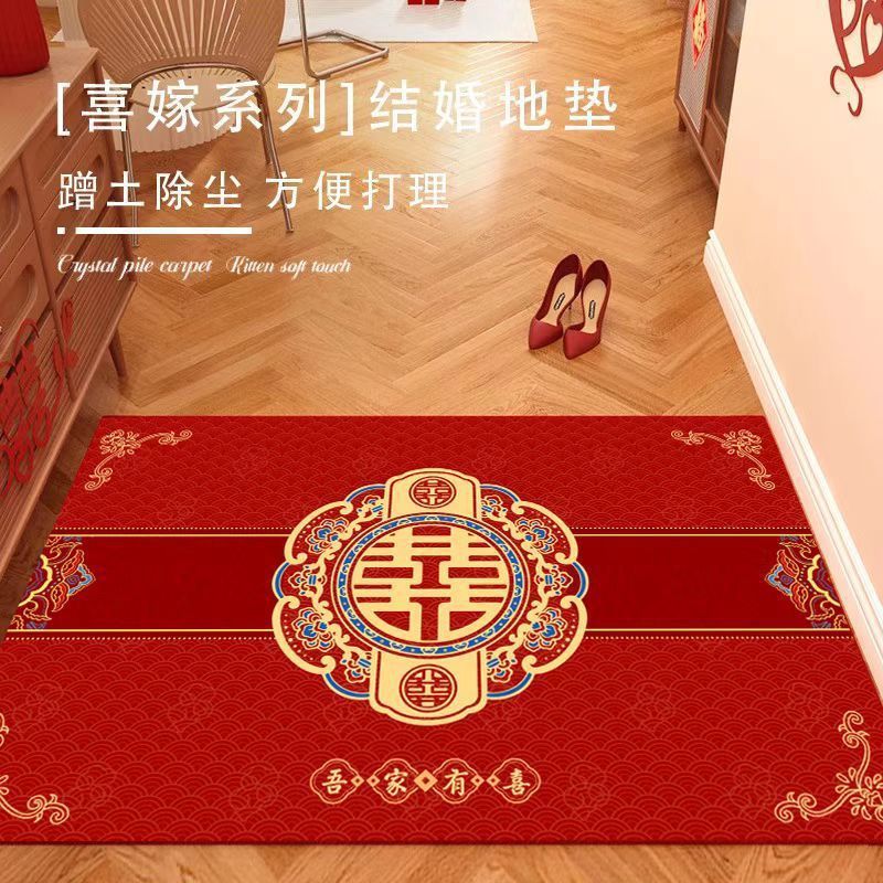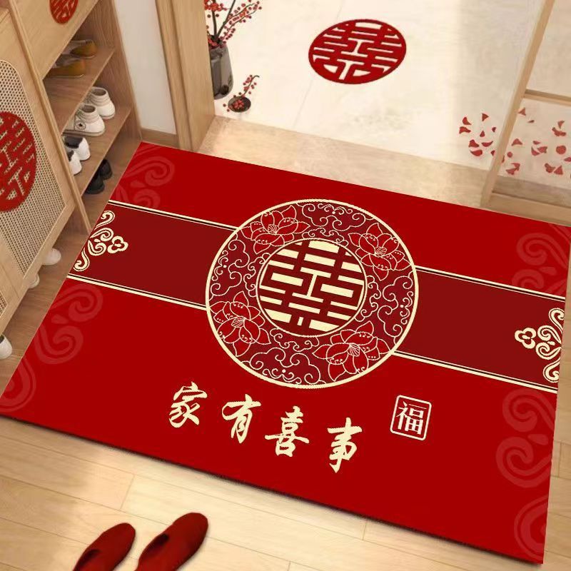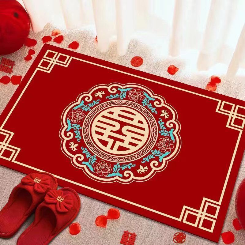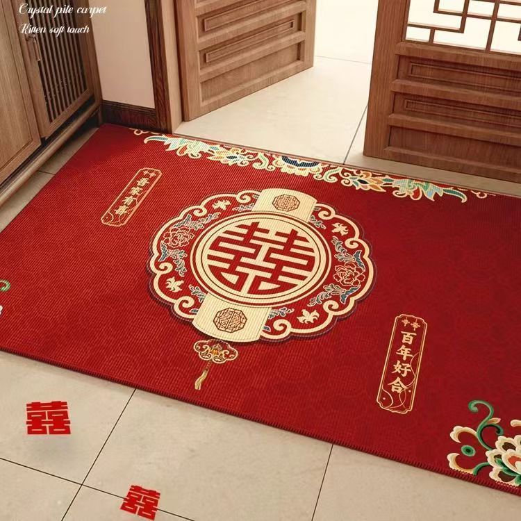 결혼식 전용 바닥매트 가정용 레드 크리스탈 벨벳 현관 매트 흡수성 미끄럼 방지 신중국풍 입구 매트스토어 가기