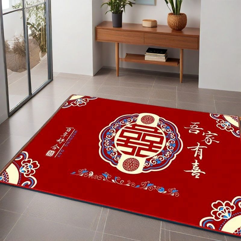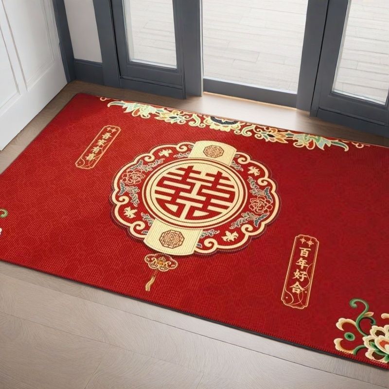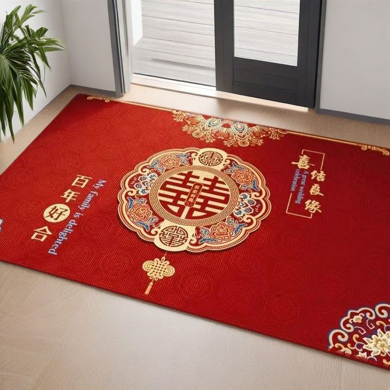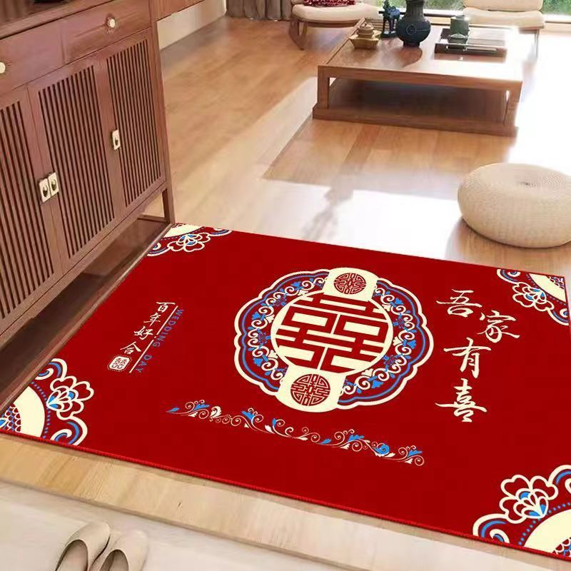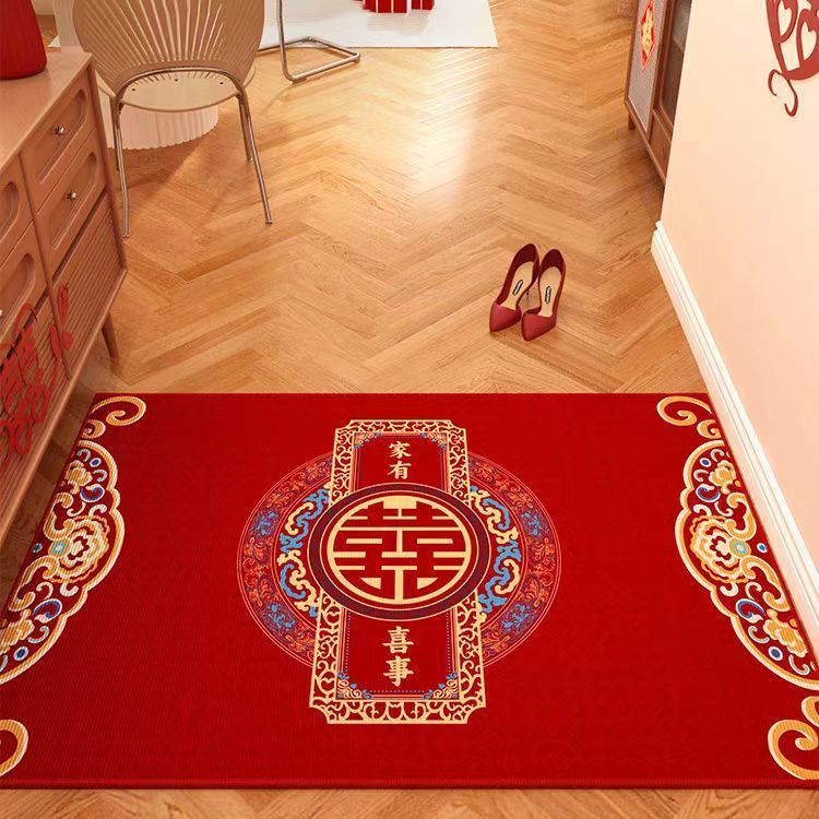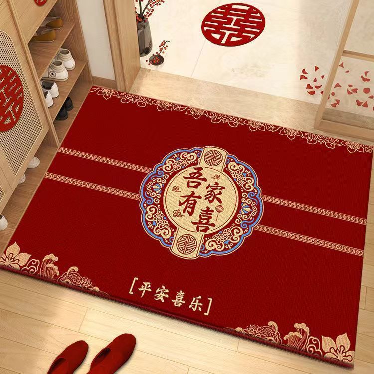 결혼식 전용 바닥매트 가정용 레드 크리스탈 벨벳 현관 매트 흡수성 미끄럼 방지 신중국풍 입구 매트스토어 가기