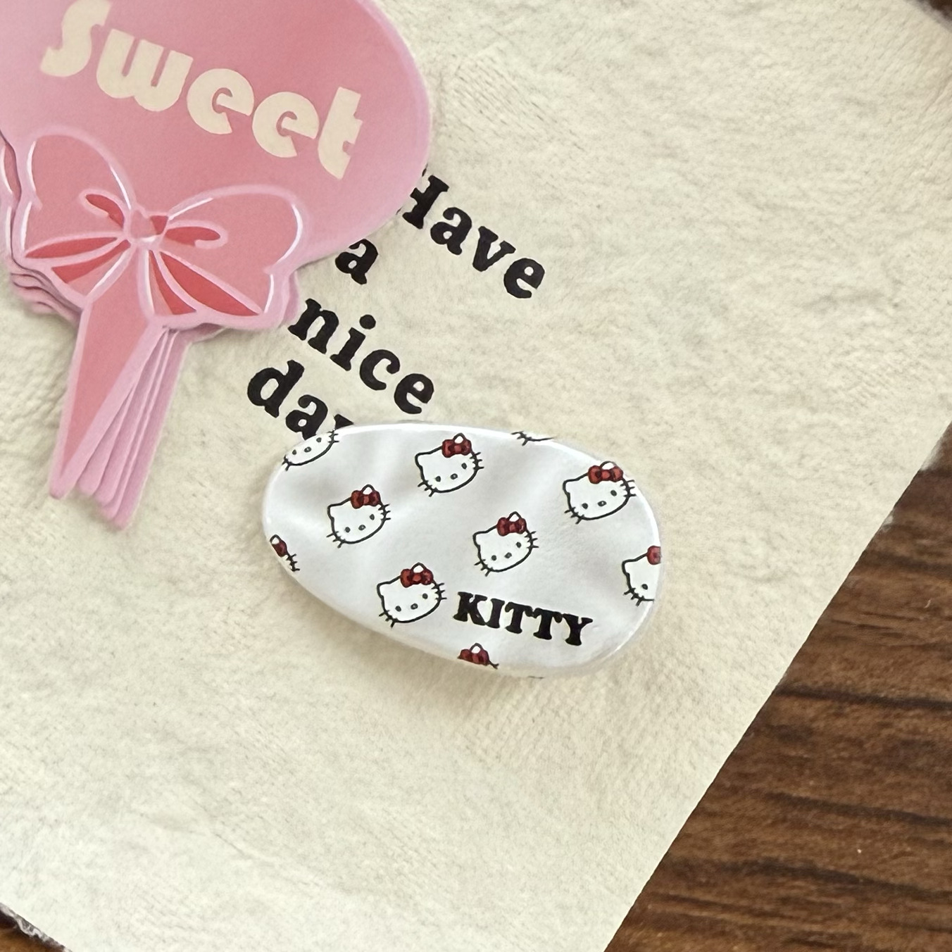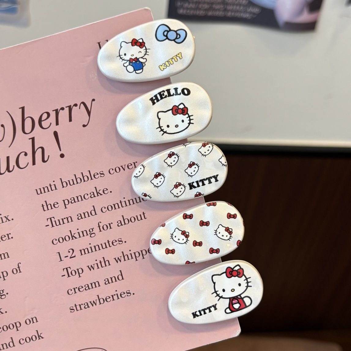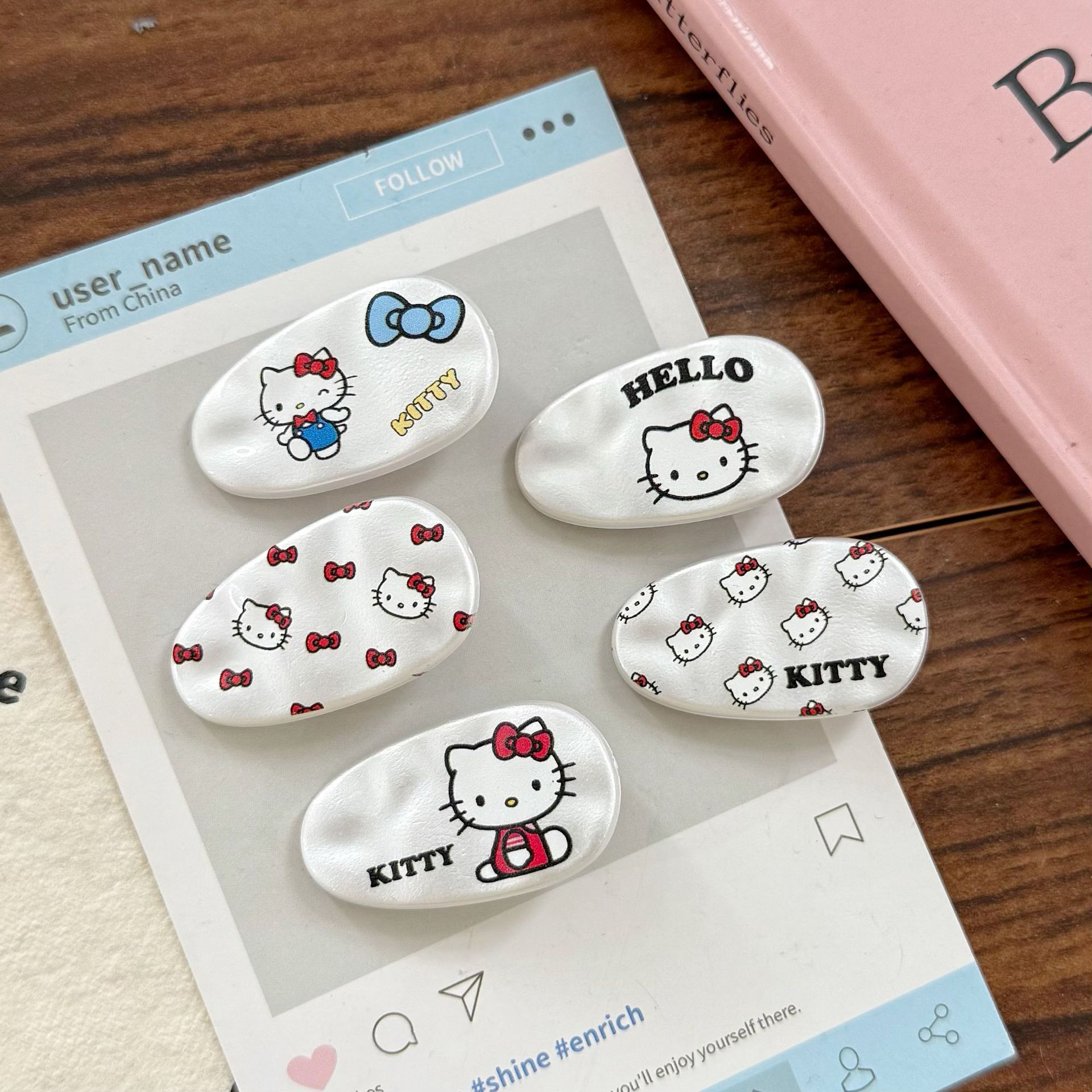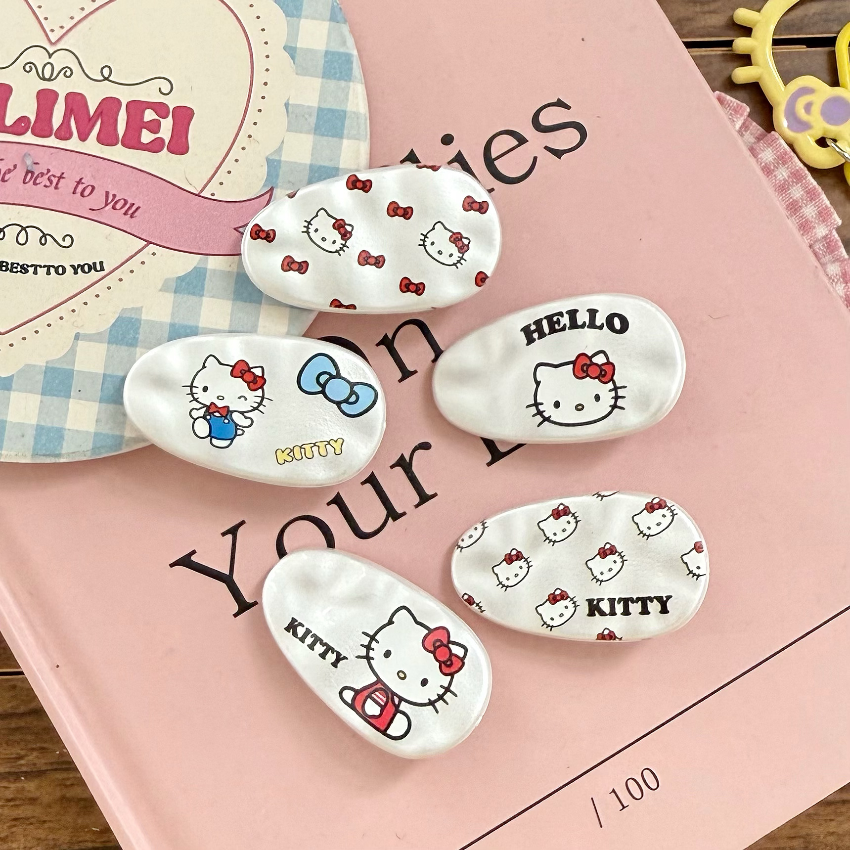 귀엽고 달콤한 진주 흰색 kt 고양이 타원형 머리핀 만화 소녀 앞머리 사이드 클립 다용도 머리핀 헤어 액세서리 일본과 한국