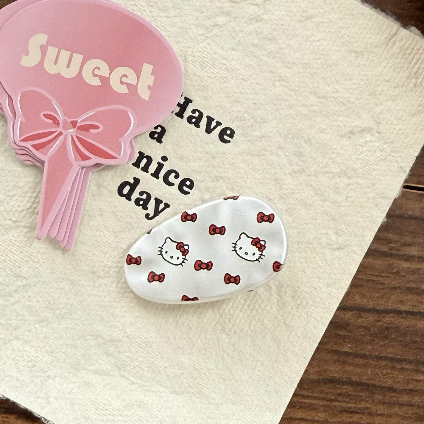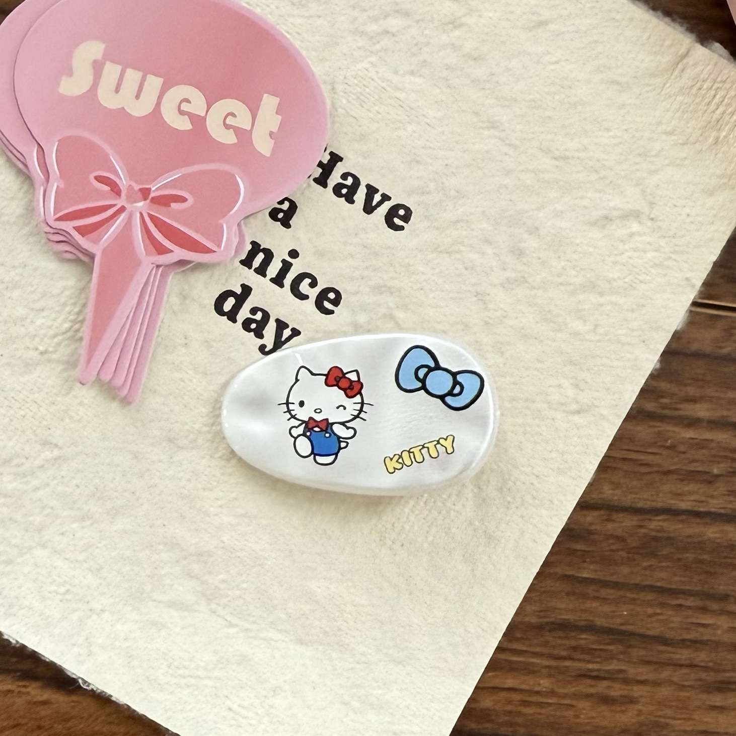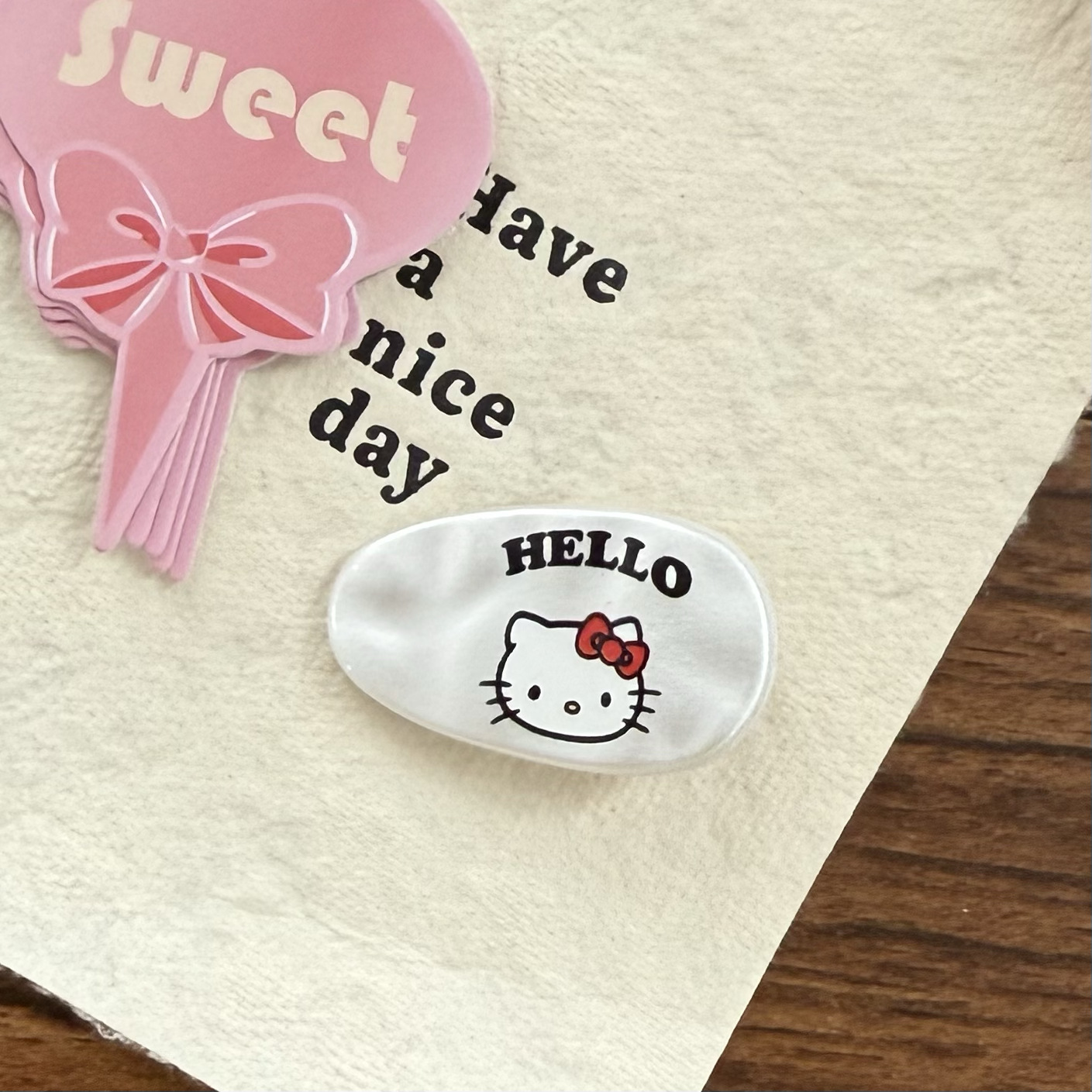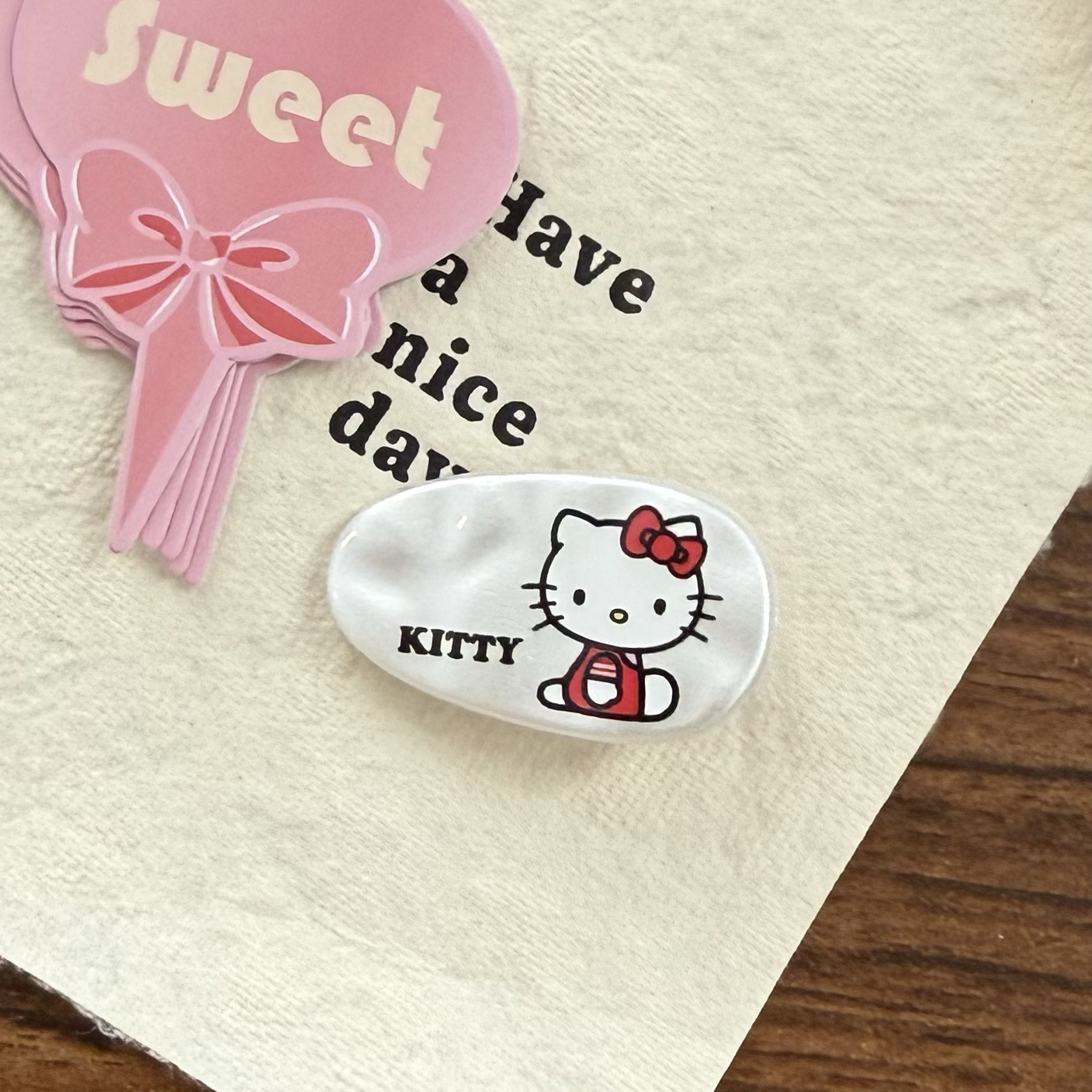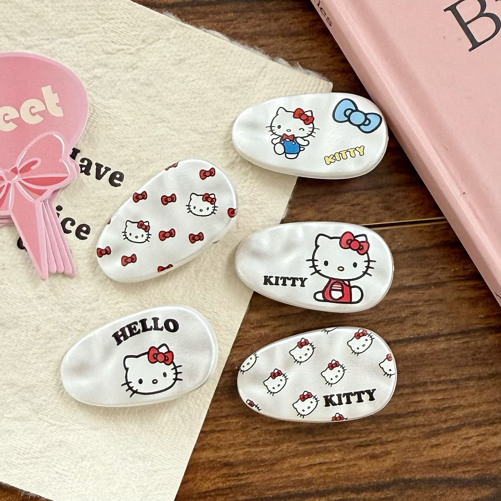 귀엽고 달콤한 진주 흰색 kt 고양이 타원형 머리핀 만화 소녀 앞머리 사이드 클립 다용도 머리핀 헤어 액세서리 일본과 한국