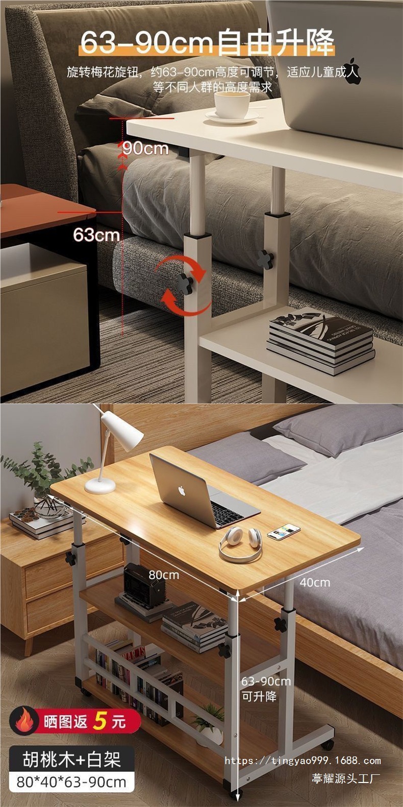 침실 침대 옆 테이블 이동식 임대 주택 테이블 홈 리프팅 컴퓨터 테이블 간단한 기숙사 게으른 이중층 리프팅