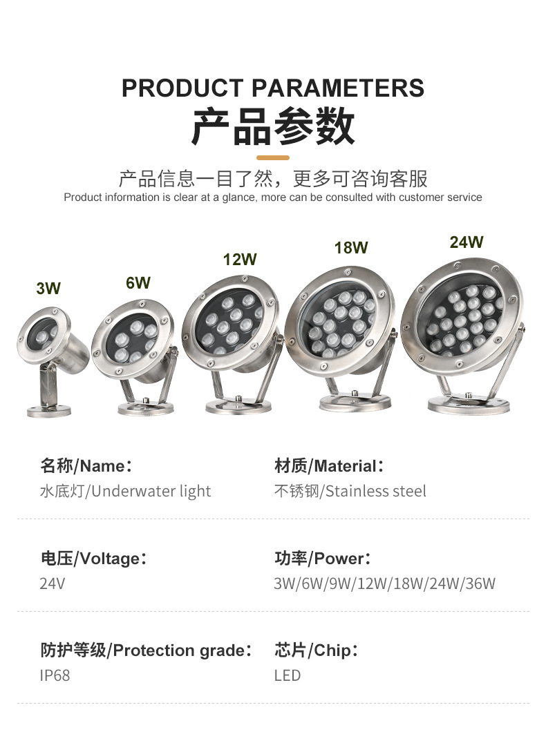 중산 LED 수중등 방수 어항 조경등 수중 다채로운 24V 스포트라이트 분수등 어항등 수영장등