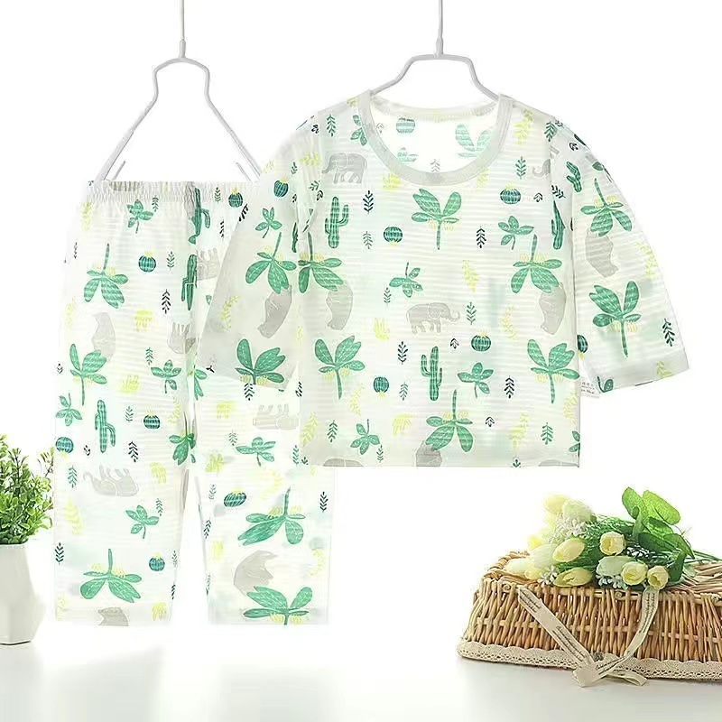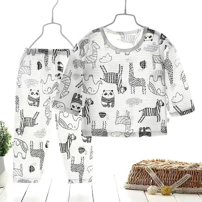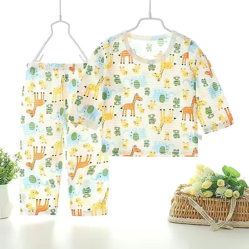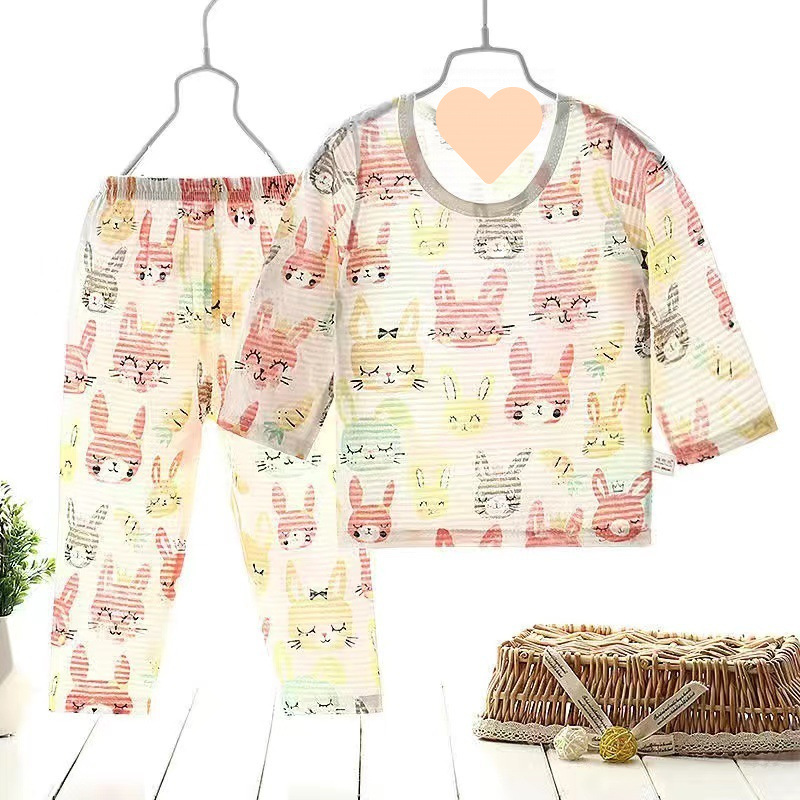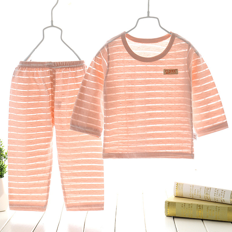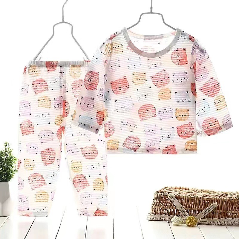 아기 에어컨 옷 얇은 여름 어린이 면화 통기성 잠옷 소년과 소녀 긴팔 바지 정장 가정 의류