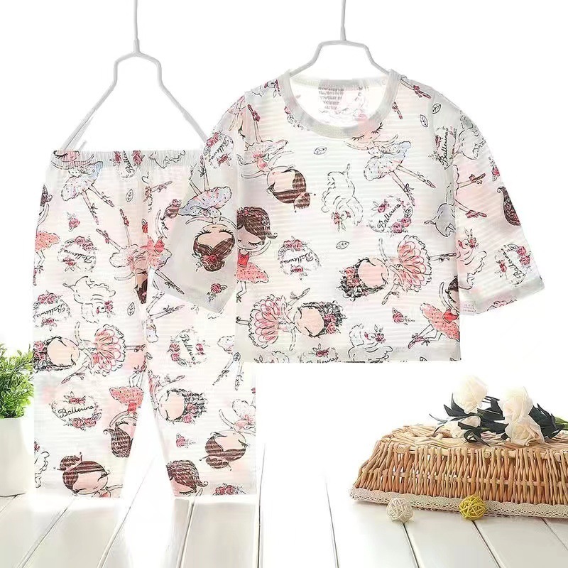 아기 에어컨 옷 얇은 여름 어린이 면화 통기성 잠옷 소년과 소녀 긴팔 바지 정장 가정 의류스토어 가기