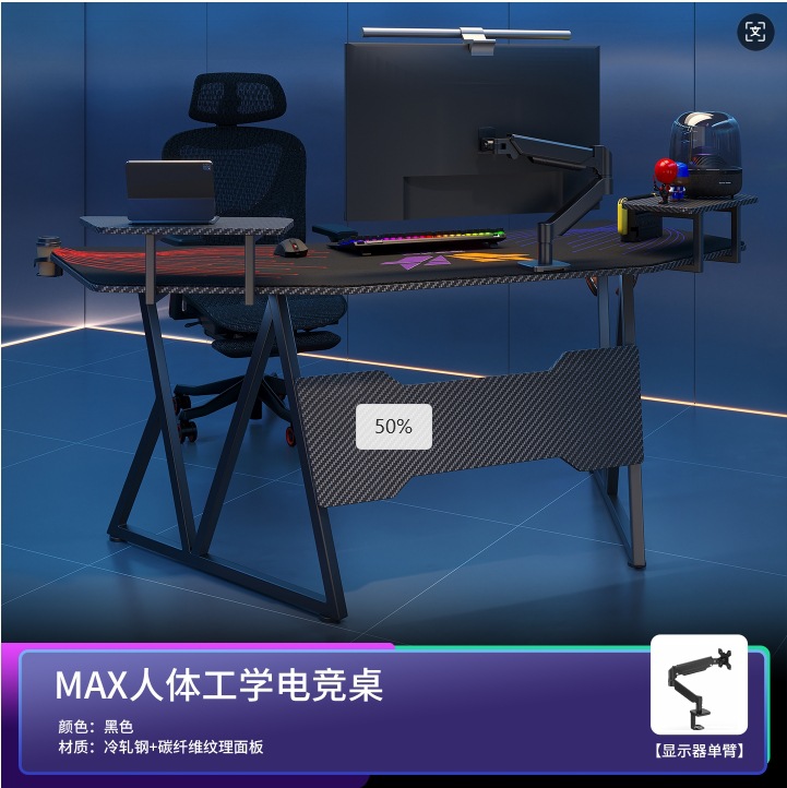 • 인체공학적 대형 게이밍 데스크 + 모니터 싱글 암