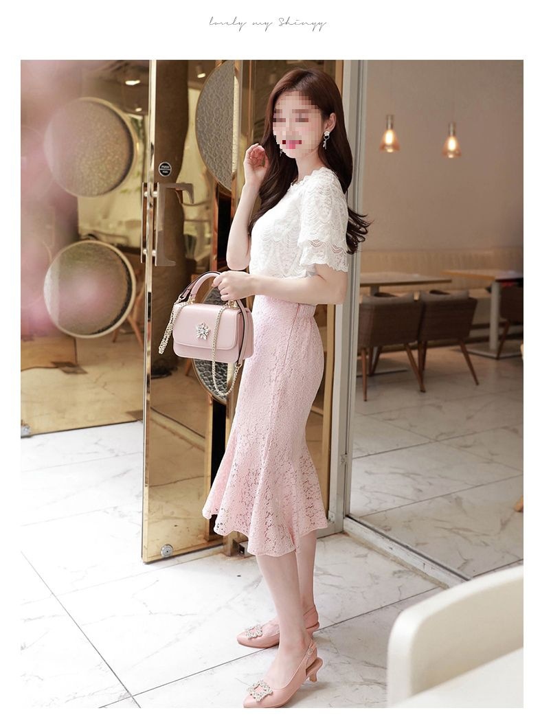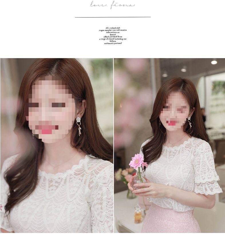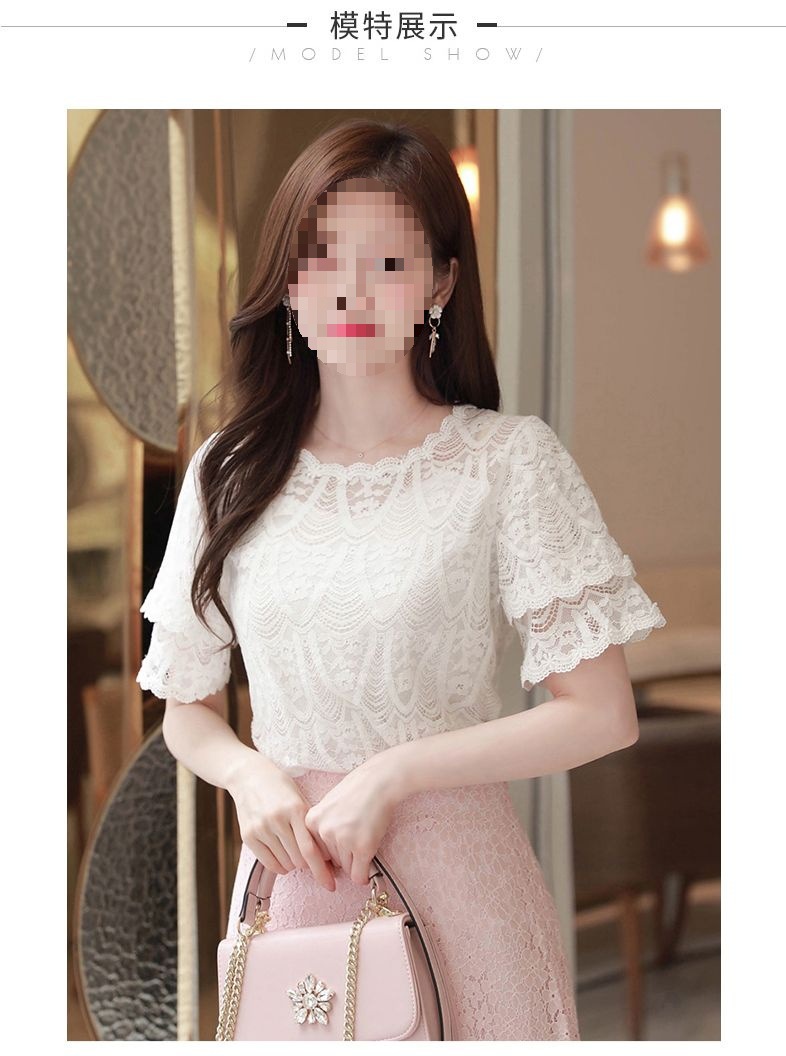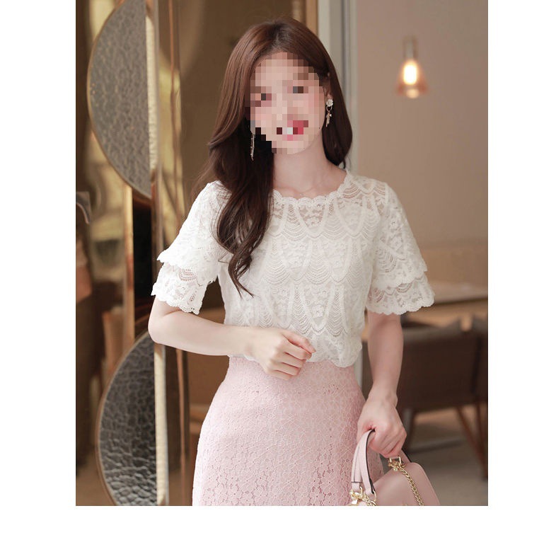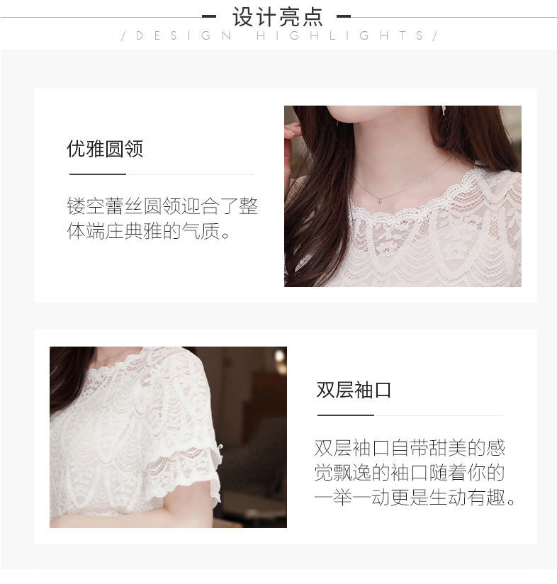 여름 여성을 위한 수용성 레이스 탑, 새로운 한국식 흰색 기질 중공 라운드 넥 반팔 쉬폰 바닥 셔츠스토어 가기