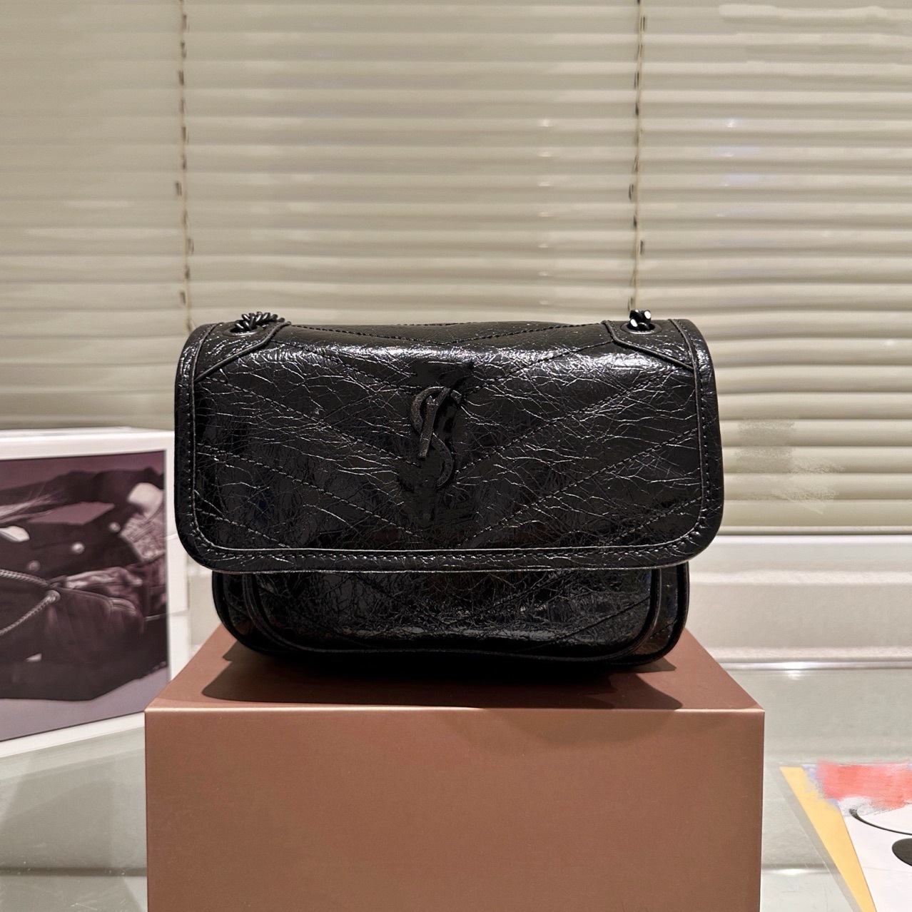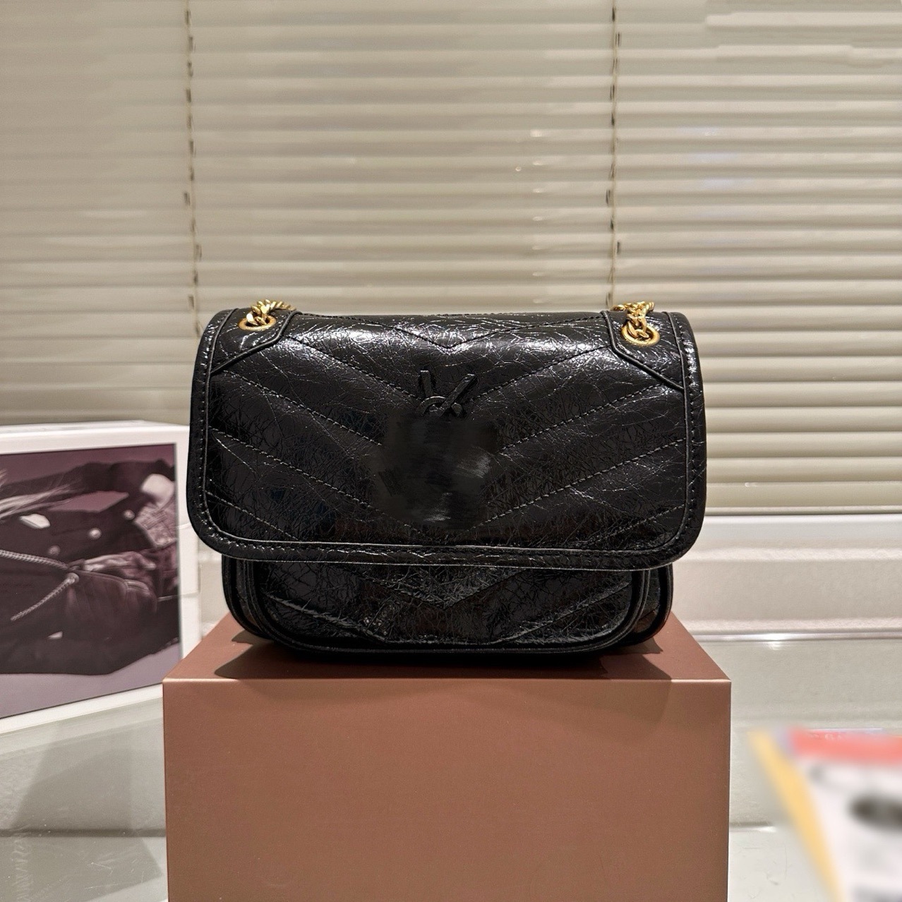새로운 폭발 패턴 소 가죽 레트로 메신저 가방 소 가죽 여성 가방 더블 체인 대용량 어깨 크로스 바디 작은 사각형 가방스토어 가기