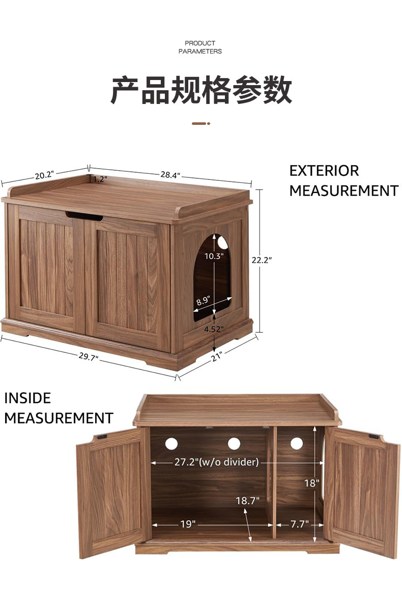 국경 간 맞춤형 숨겨진 고양이 쓰레기 애완 동물 둥지 캐비닛 애완 동물 집 목조 다목적 레이아웃 가구 보관 캐비닛