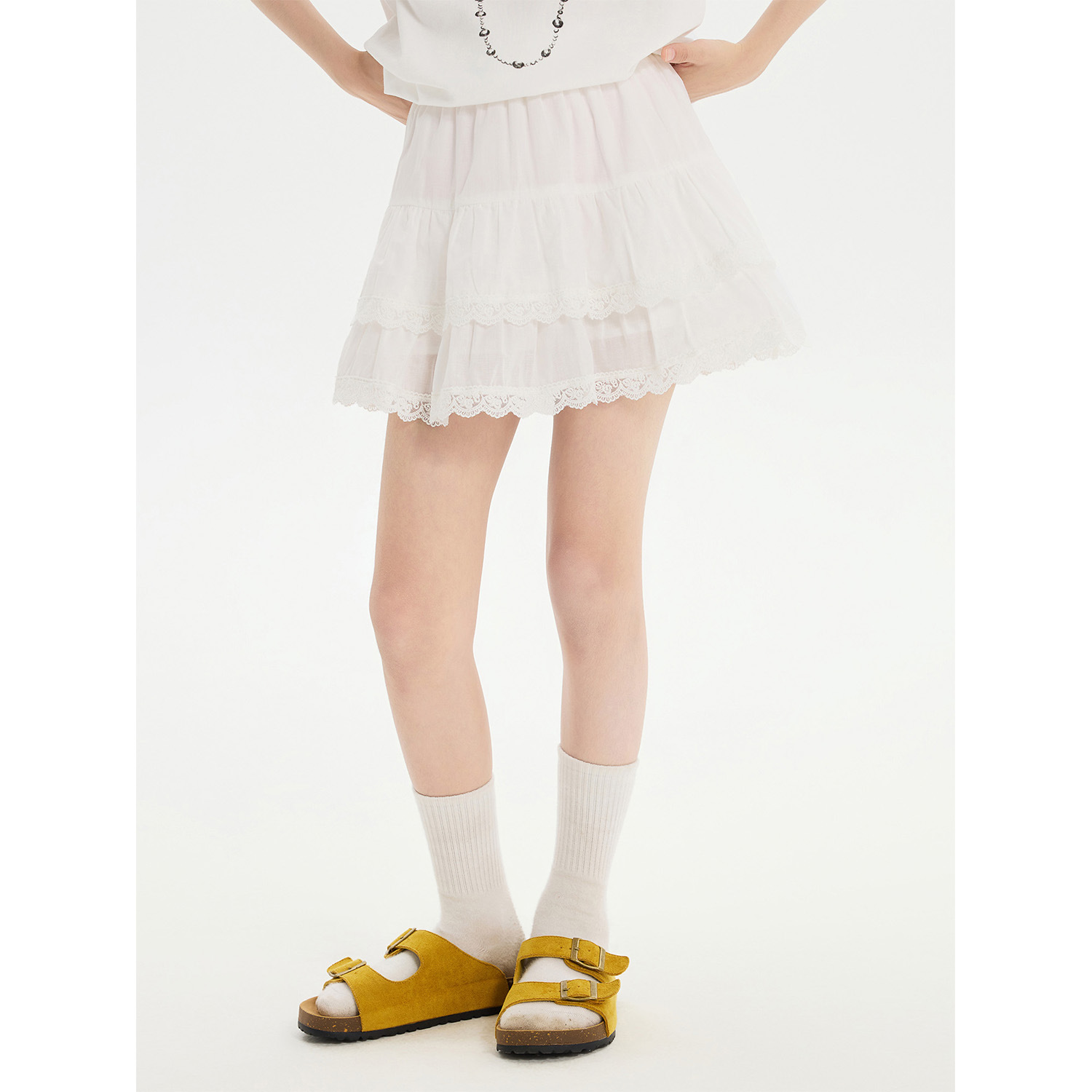 여자 흰색 레이스 스커트 2025 여름 새로운 어린이 높은 허리 a 라인 케이크 스커트 달콤한 캐주얼 스커트스토어 가기