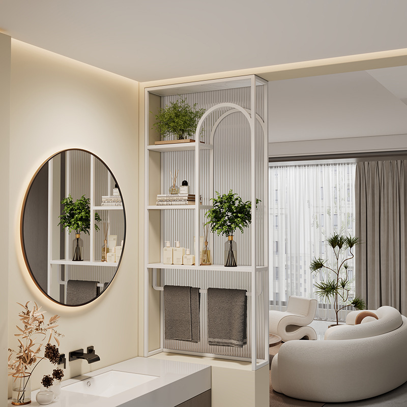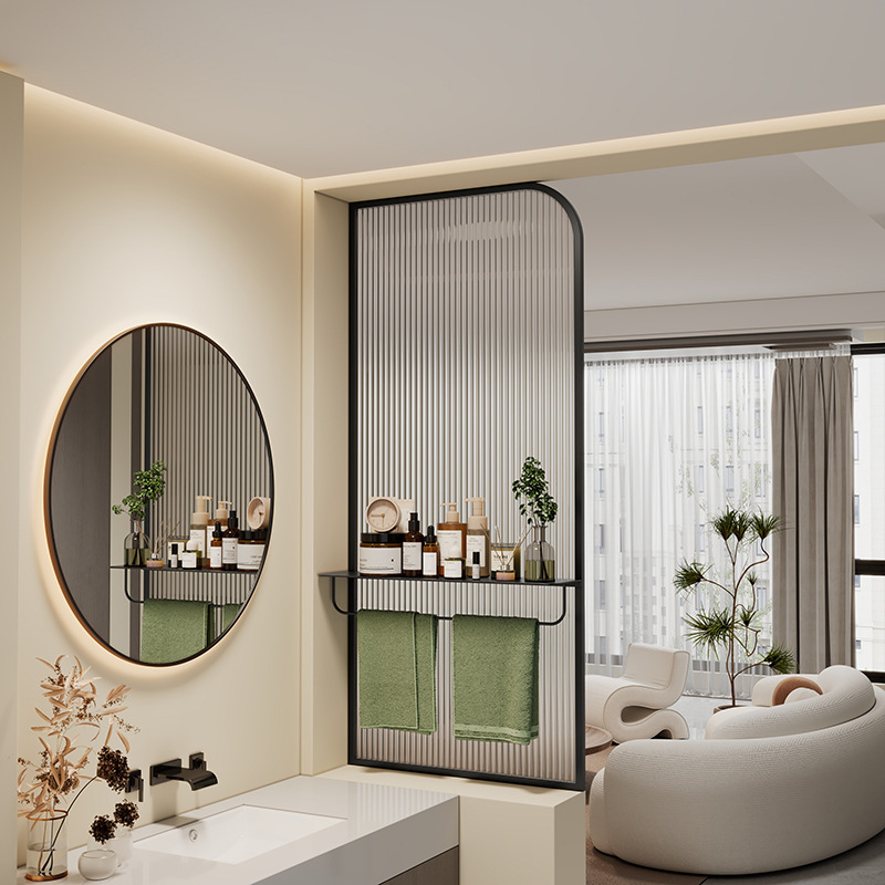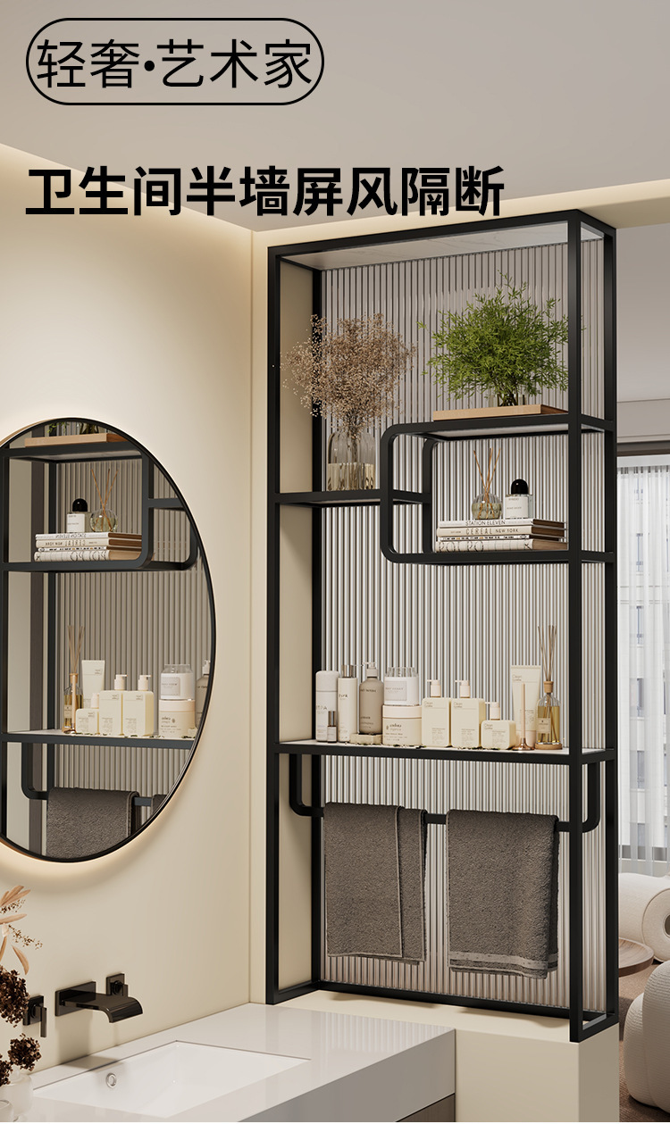가벼운 고급 욕실 반벽 칸막이 캐비닛 거실 스크린 Changhong 유리 가벼운 고급 건식 및 습식 분할 세면대 보관함스토어 가기