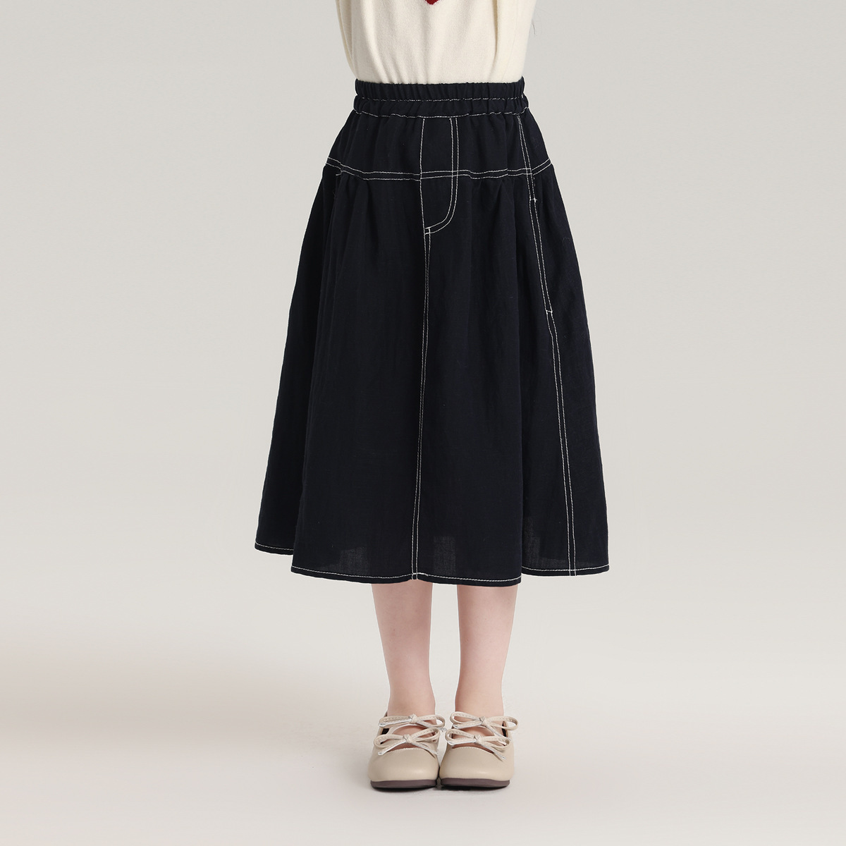 푸딩 하루 소녀 스커트 2025 새로운 어린이 간단한 데님 롱 스커트 아기 소녀 중간 길이 A 라인 스커트