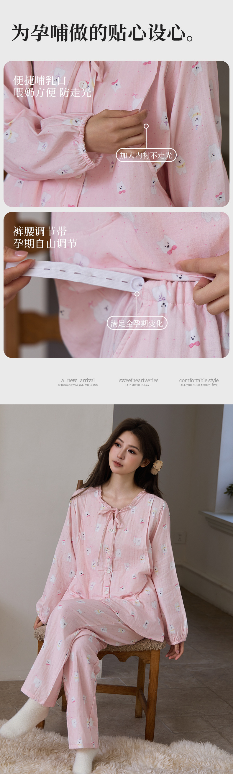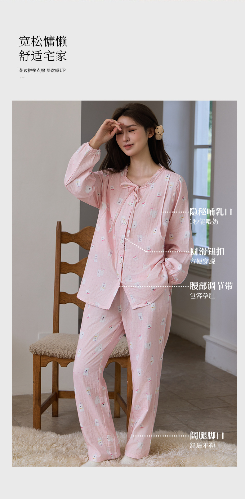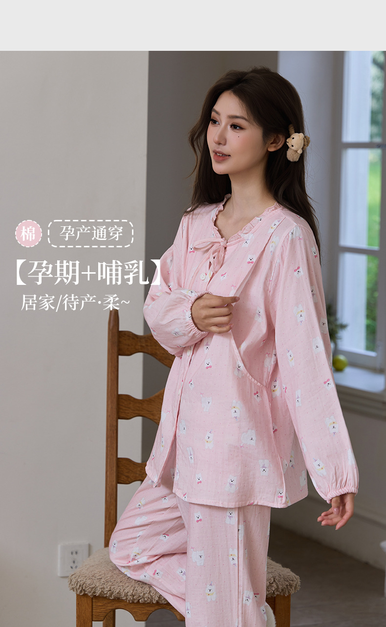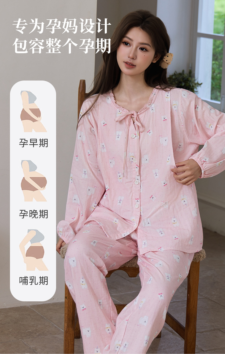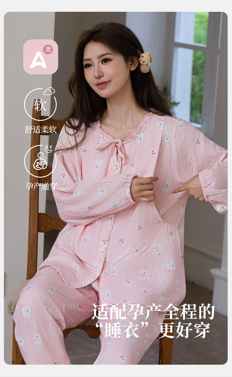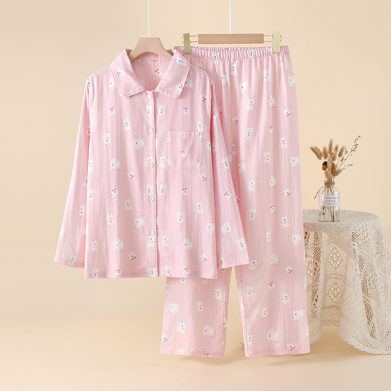 새로운 여성스러운 스타일의 순면 잠옷, 여성용 이중 거즈, 봄, 가을, 여름, 야외에서 착용 가능, 달콤하고 귀여운 가정복 세트스토어 가기