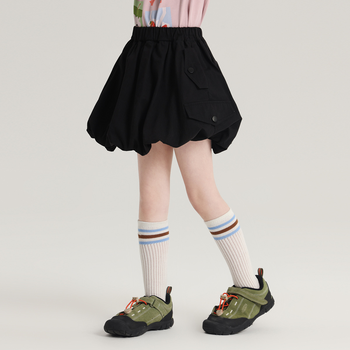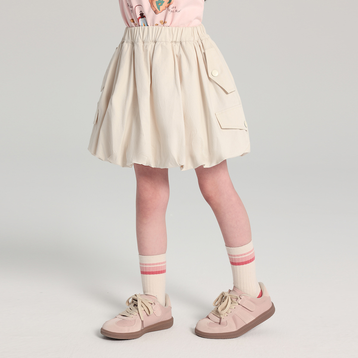 푸딩 하루 봄 신작 여아 스커트 2025 봄 신작 아동 스타일 작업복 스타일 하프 길이 스커트