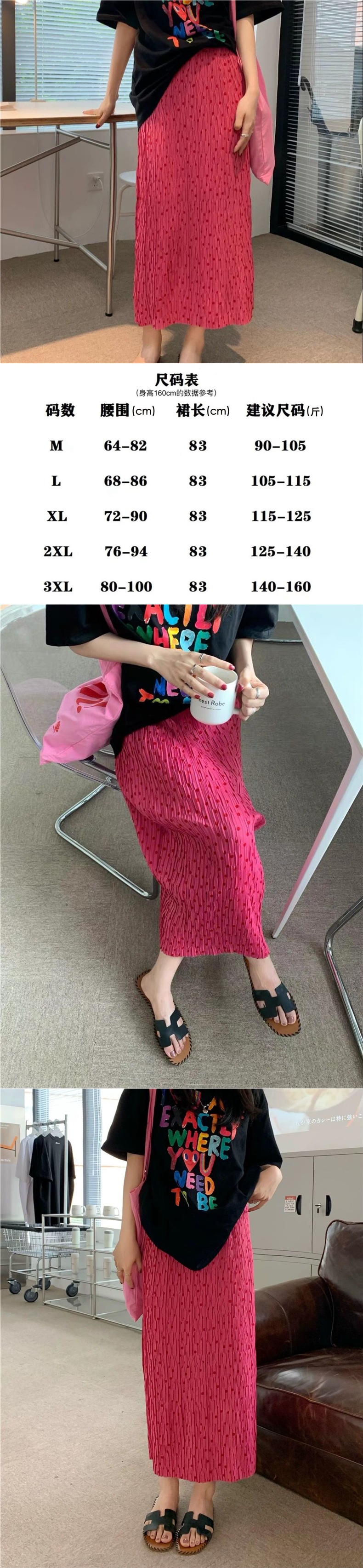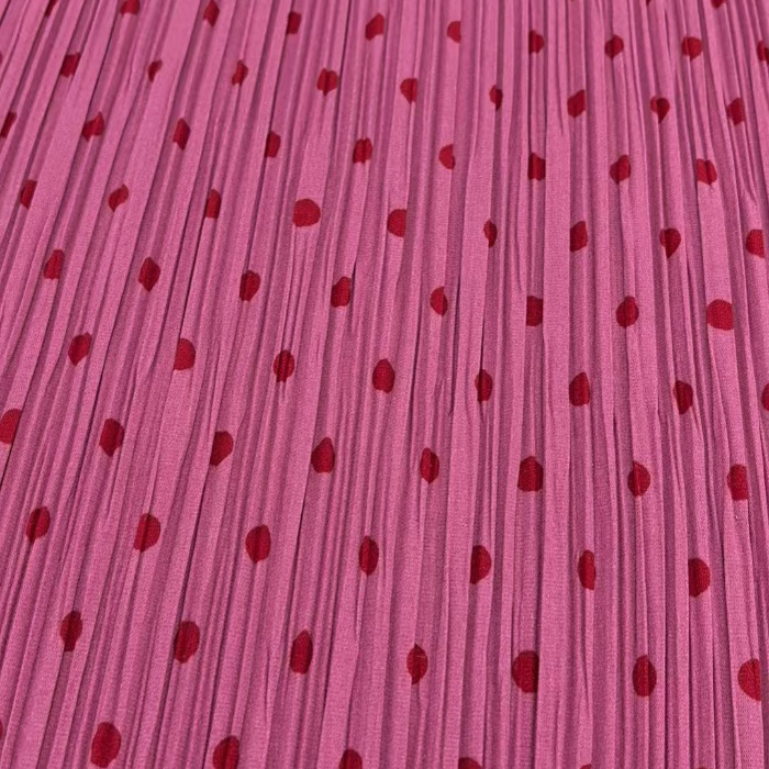 로즈 레드 대비 폴카 도트 질감 주름 스커트로 살을 커버하고 슬림하게 보여주는 힙 커버 스커트 뒷트임 스트레이트 스커트