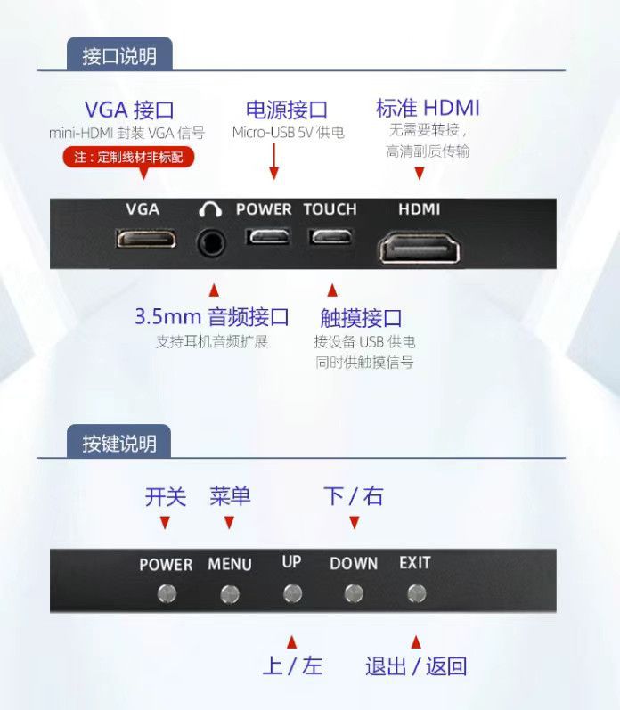 • 9.7inch Type-C 터치 2048*1536 완성 모니터 공식 표준