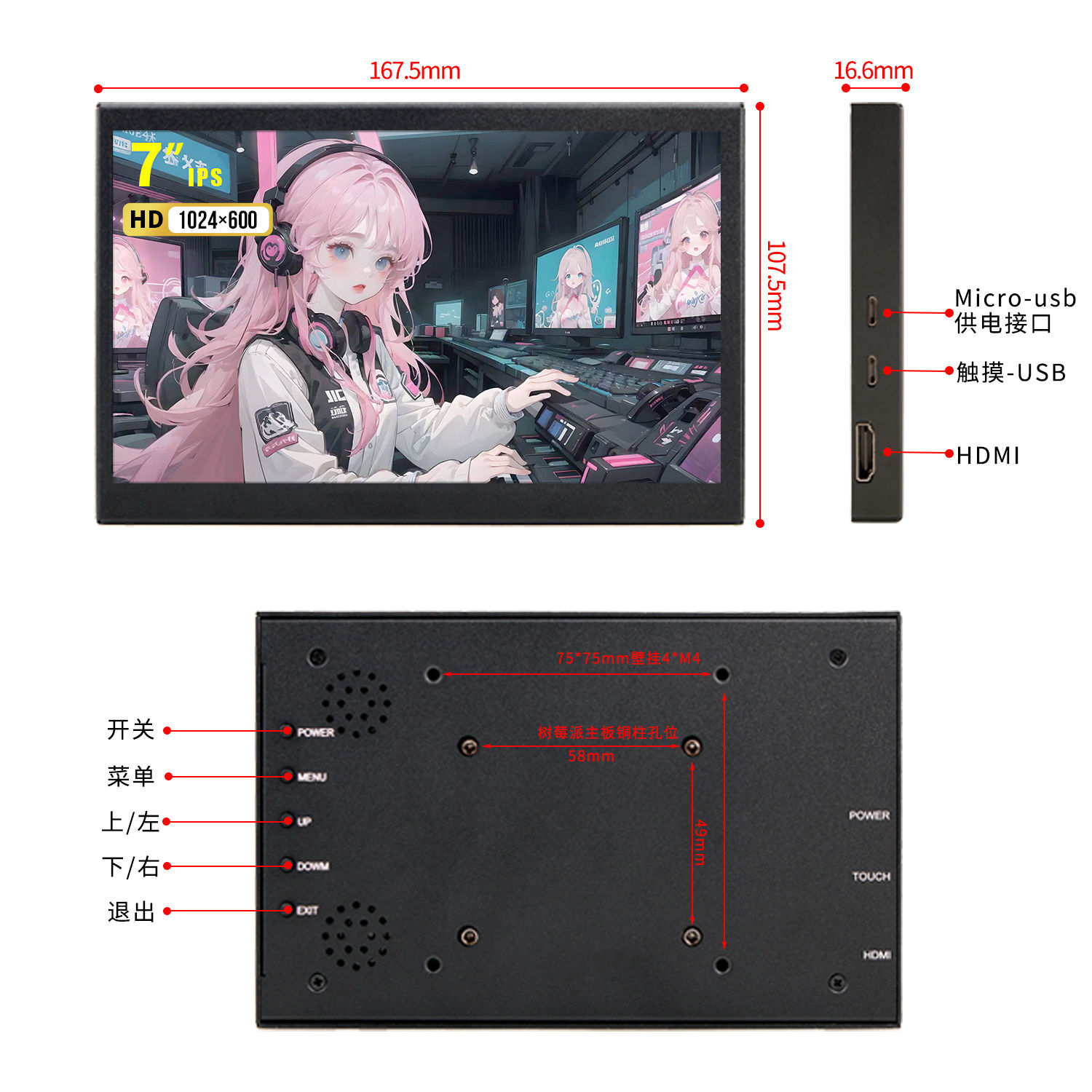 • 새로운 좁은 베젤 7inch IPS 터치 1024*600 완성 모니터 공식 표준