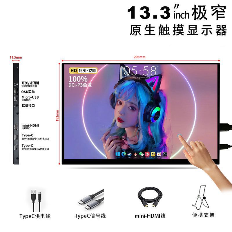 • 13.3inch Type-C 터치 A+ 스크린 1080P 완성 모니터 공식 표준