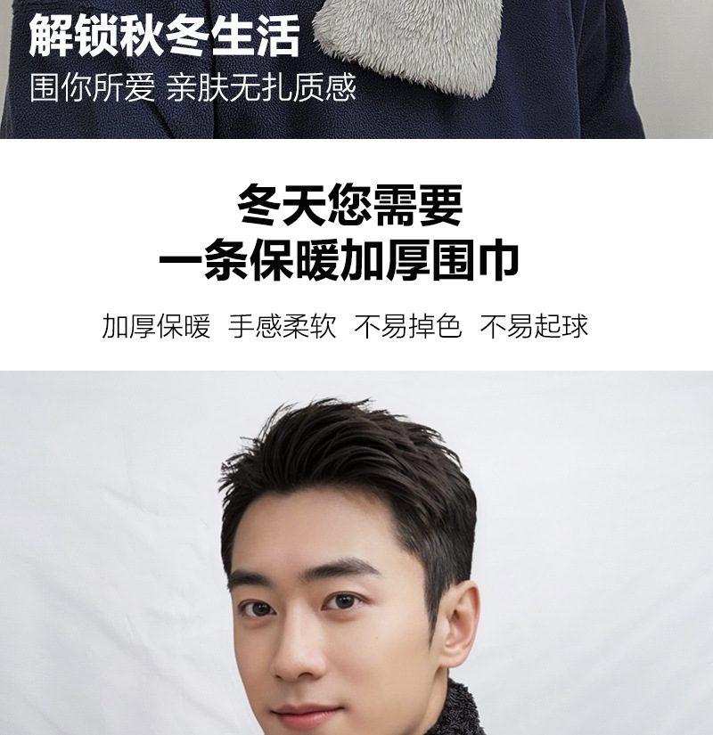 2025 가을, 겨울 따뜻한 스카프 세련된 단순 솔리드 컬러 남성 플러시 스카프 북극 벨벳 목 보호대 추위 스카프스토어 가기