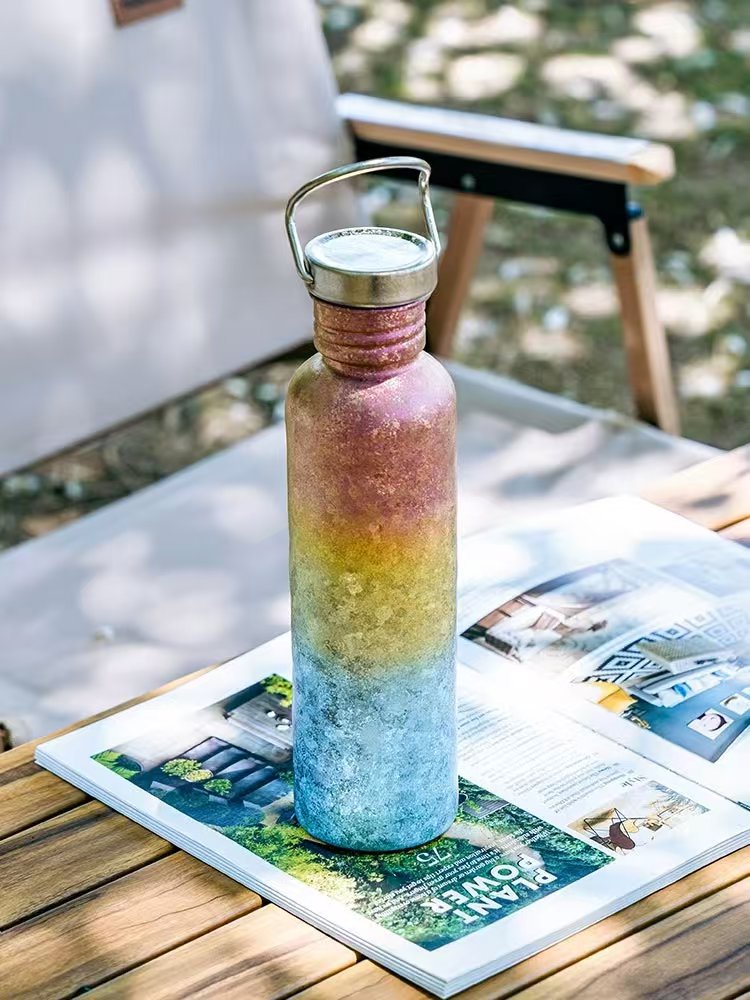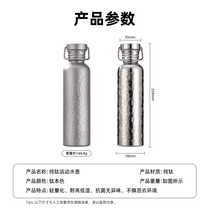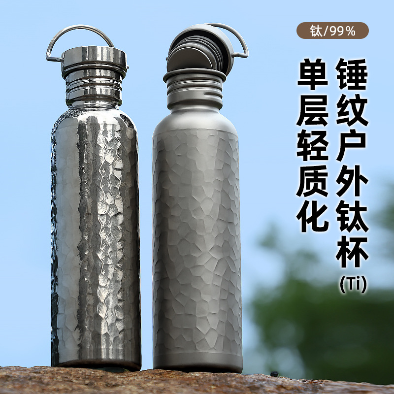 순수 티타늄 야외 사이클링 물병, 야외 스포츠 물컵, 여행용 물컵, 휴대용 캠핑 물병, 경량 망치 패턴 물컵