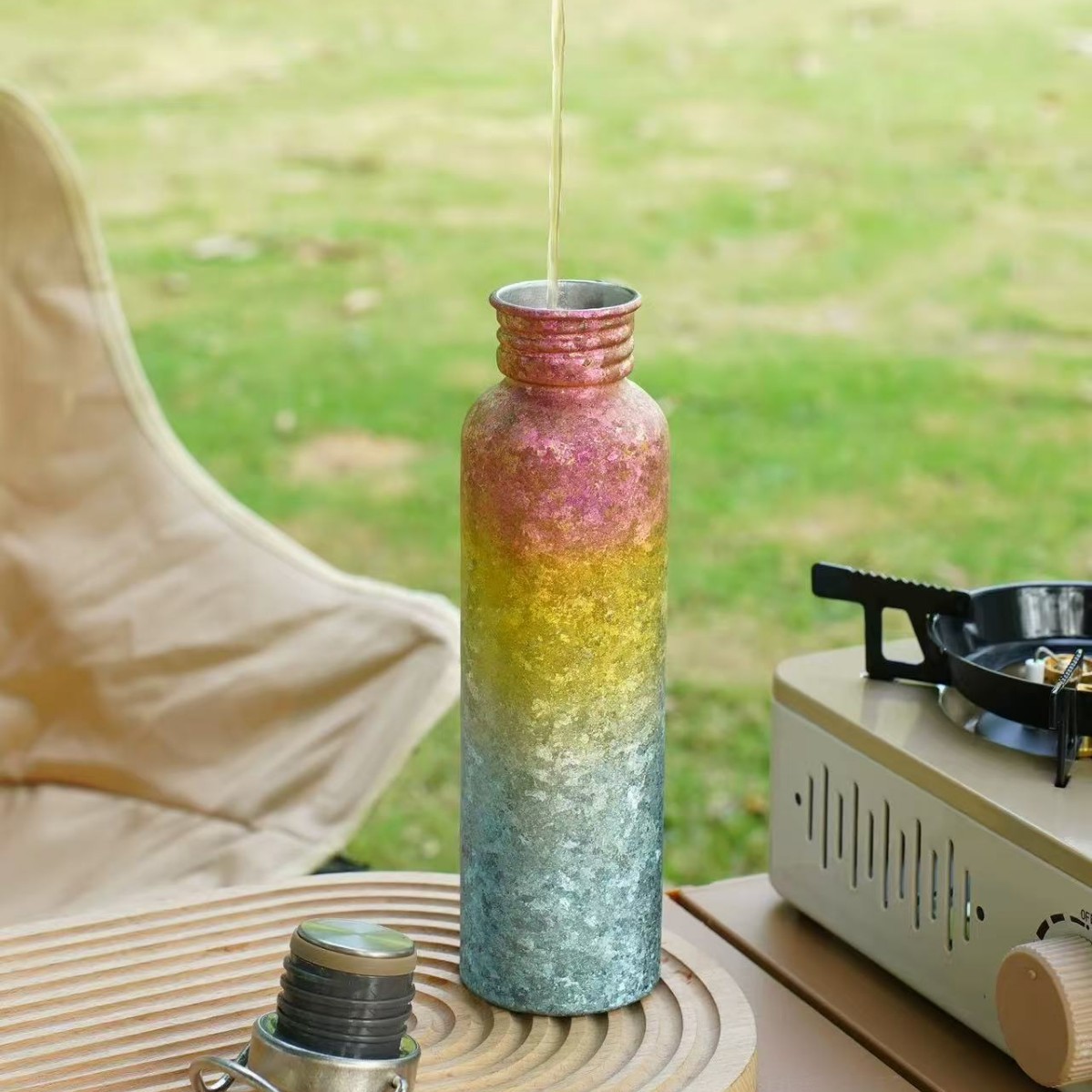 순수 티타늄 야외 사이클링 물병, 야외 스포츠 물컵, 여행용 물컵, 휴대용 캠핑 물병, 경량 망치 패턴 물컵스토어 가기