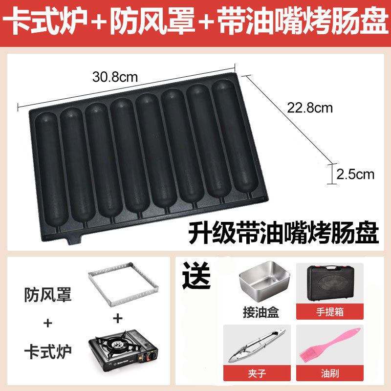 • (초보자용 입문모델) 오일노즐이 있는 소시지 그릴 플레이트 + 원형 화재 겸용 카세트 스토브 + 방풍 커버 (무료 4종 세트)