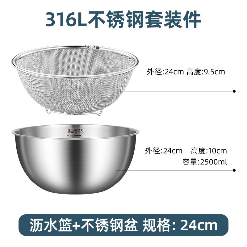 • [식품 등급 316 강철] 24CM 배수 바구니 + 스테인레스 스틸 세면대