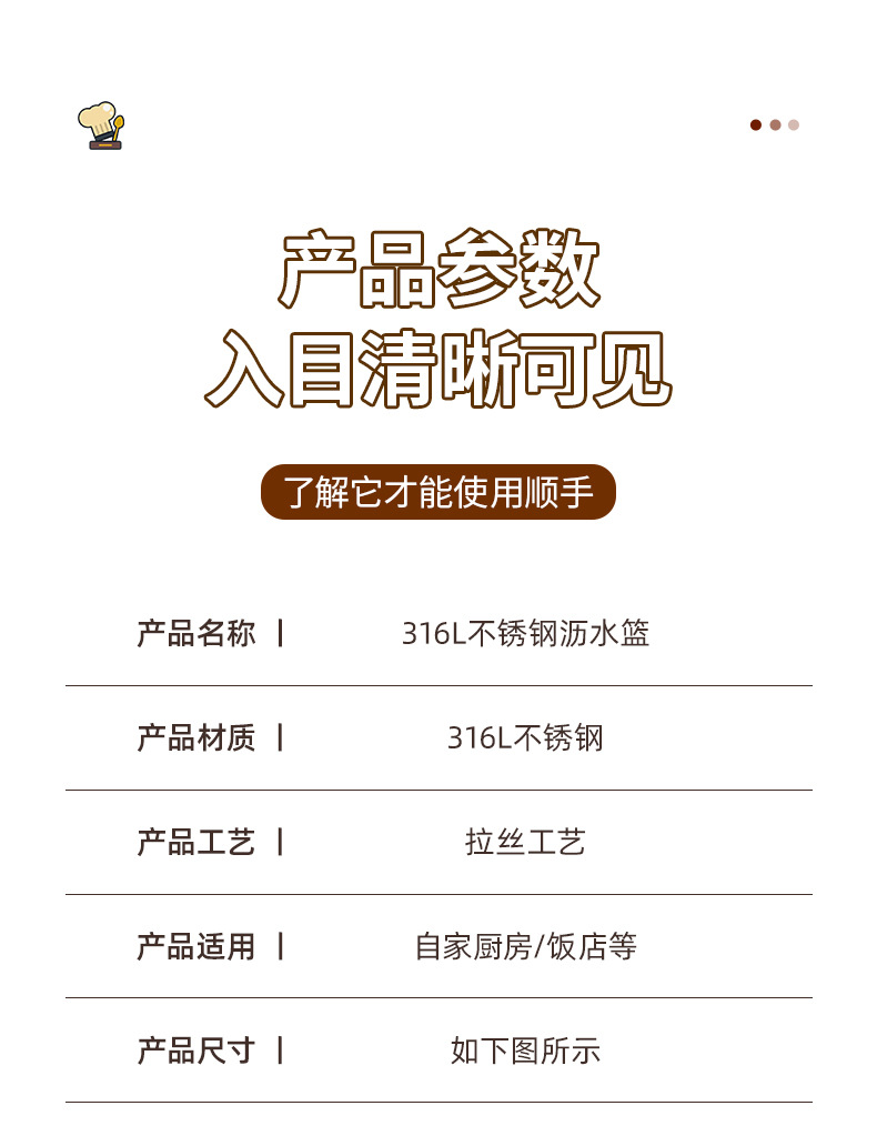 • [식품등급 316 스틸] 18CM 배수 바구니