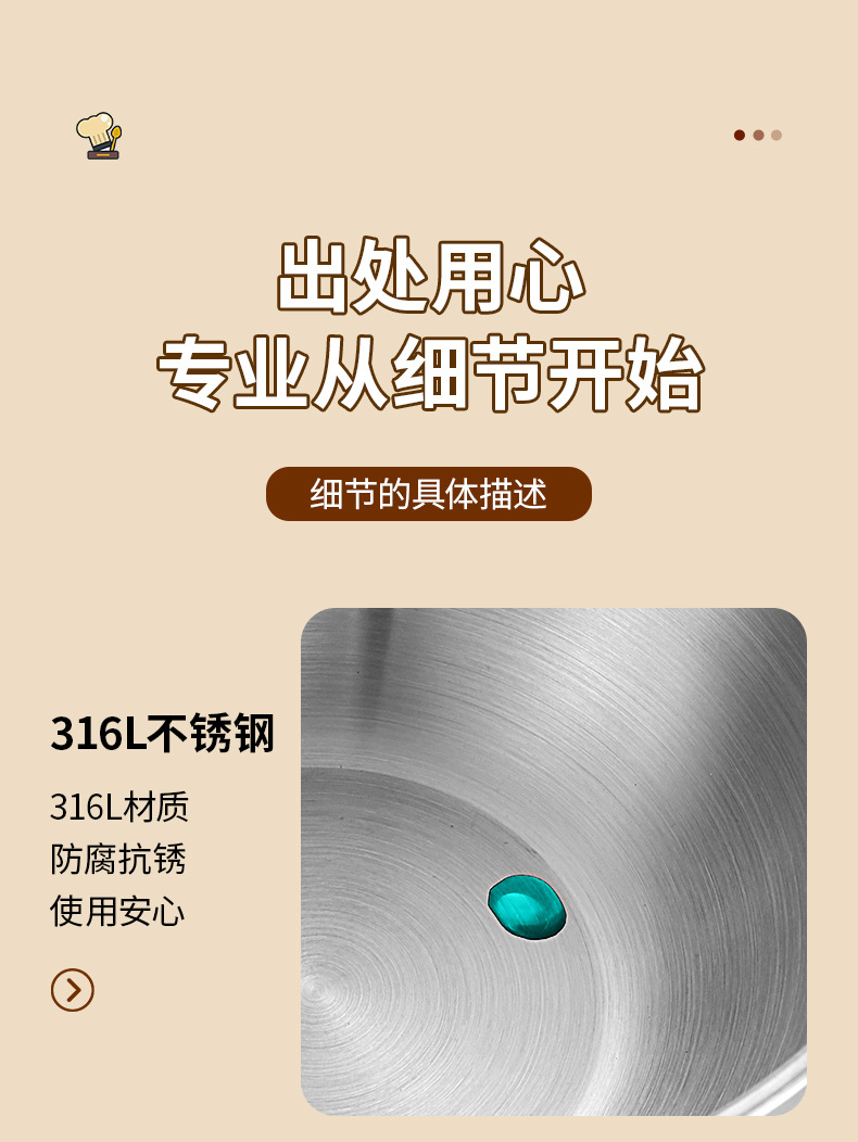 • [식품 등급 316 강철] 22CM 스테인레스 스틸 세면대