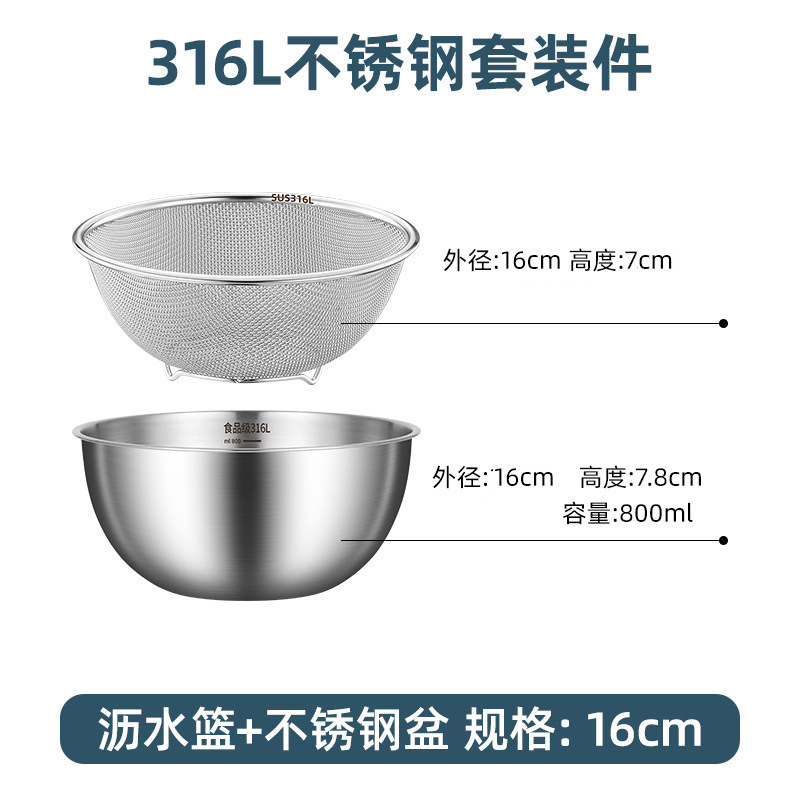 • [식품 등급 316 강철] 18CM 배수 바구니 + 스테인레스 스틸 세면대
