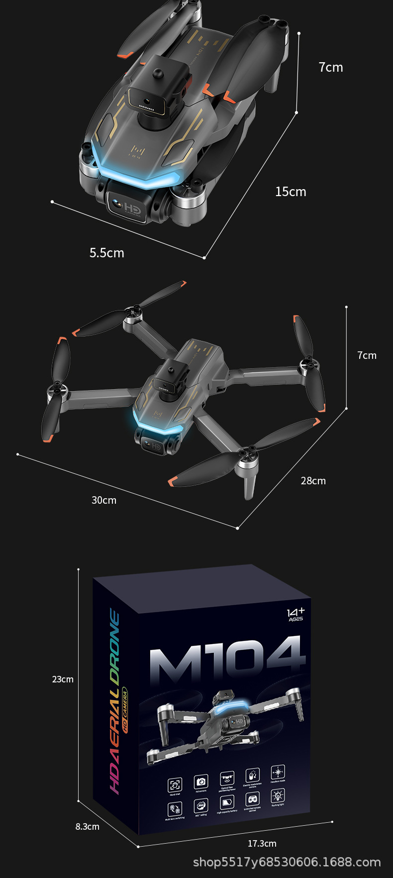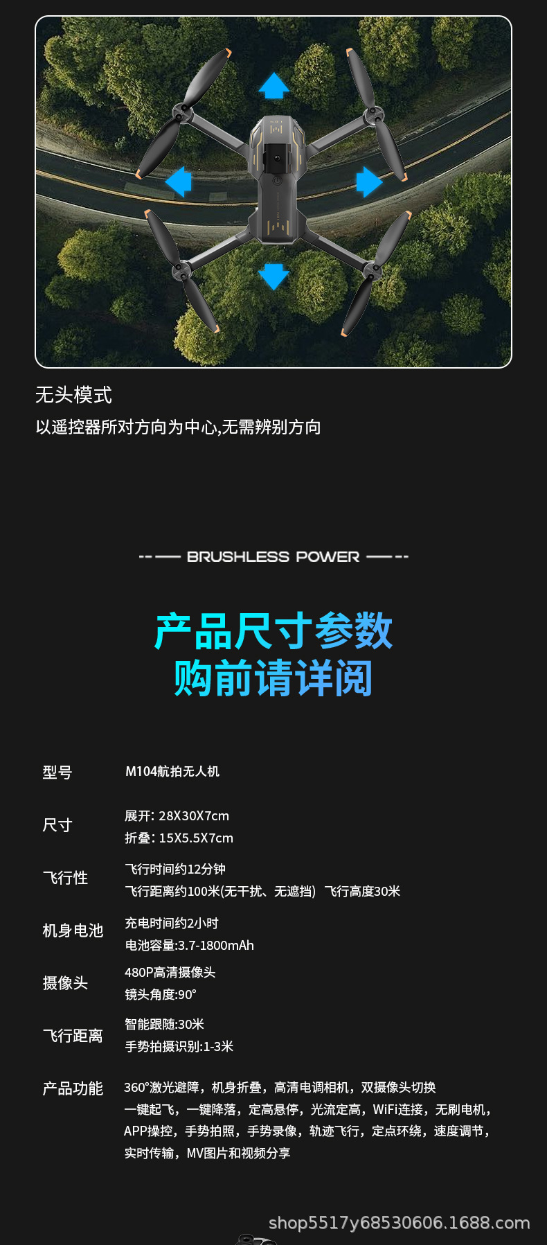 M104 듀얼 카메라 광학 흐름 이미지 전송 브러시리스 모터 드론 항공 사진 Quadcopter 지능형 장애물 회피 기능 포함스토어 가기