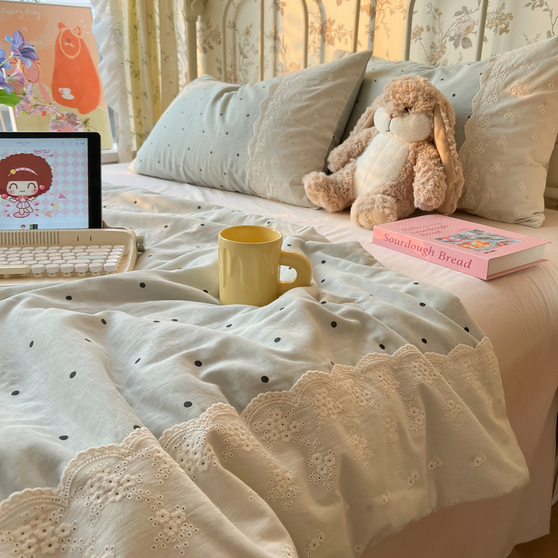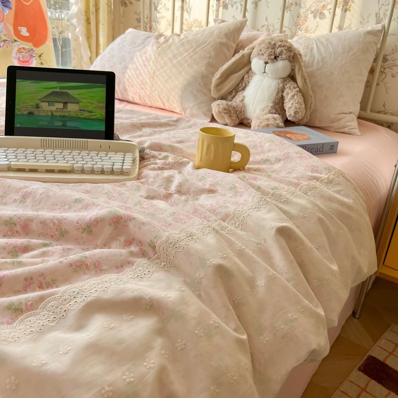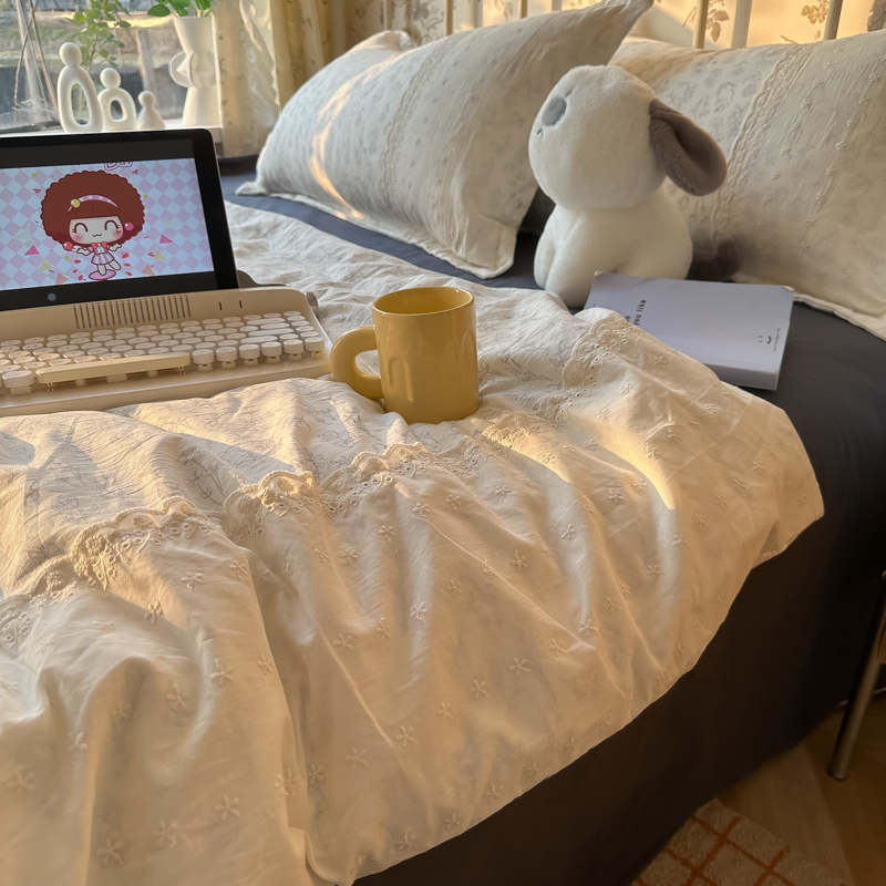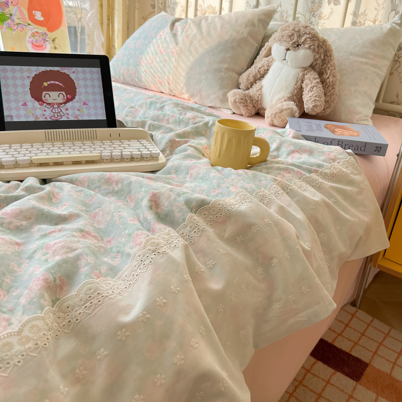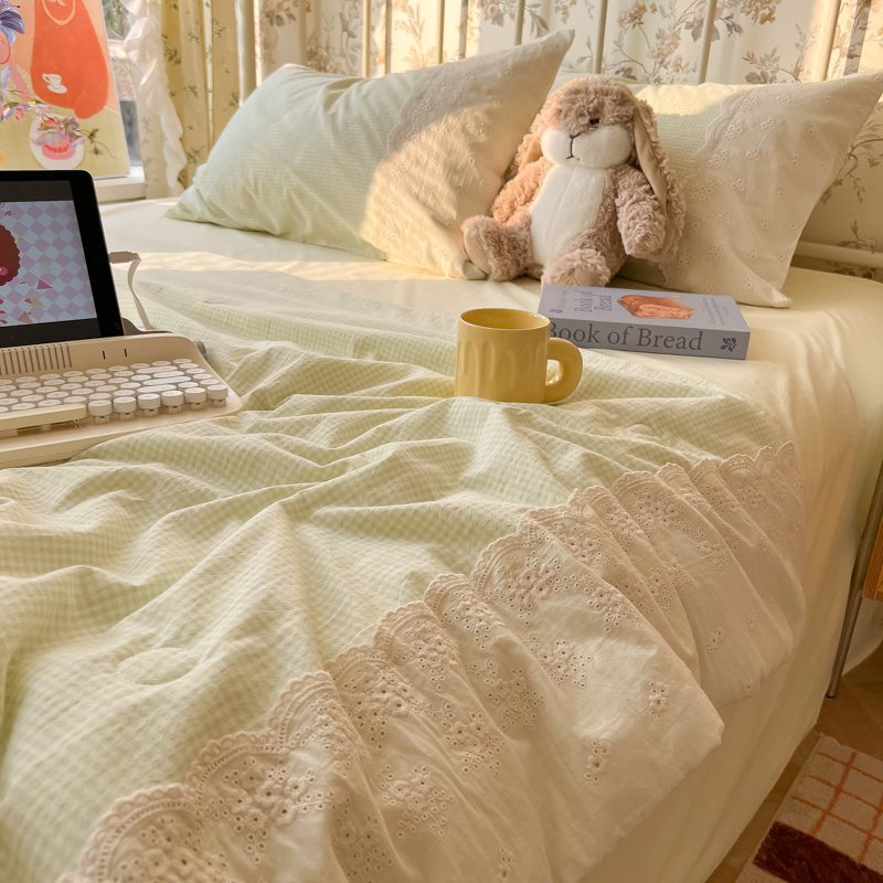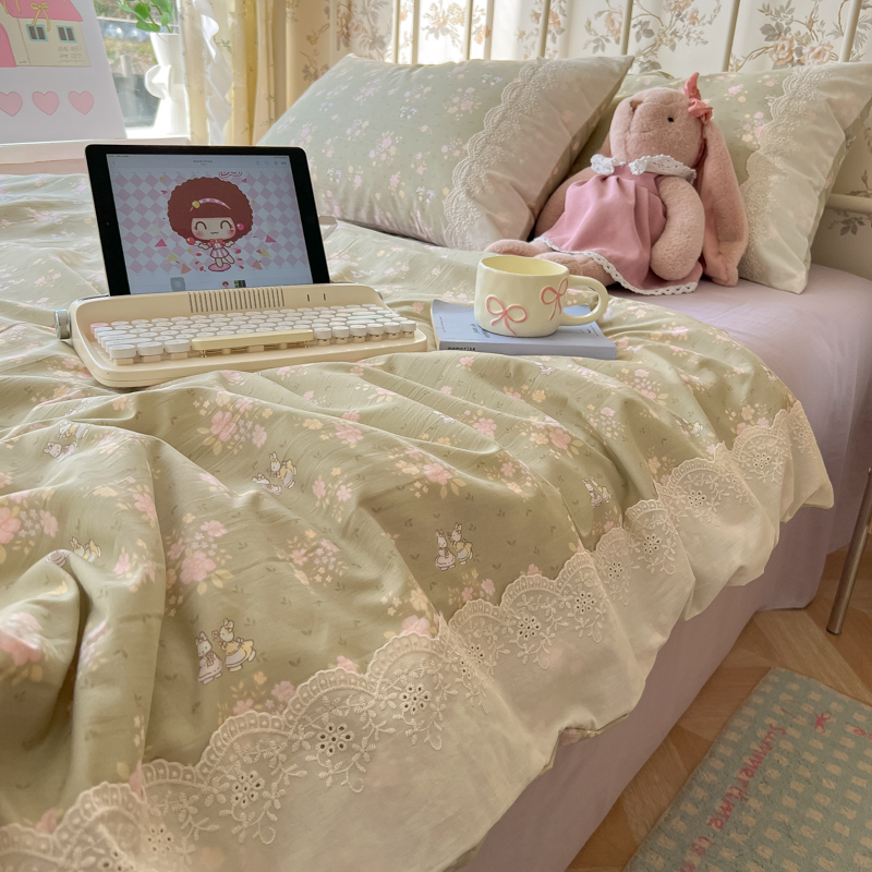 레이스 여름 이불 순면 세탁기로 세탁 가능한 에어컨 이불 4피스 세트 어린이용 싱글 여름 얇은 이불 코어스토어 가기
