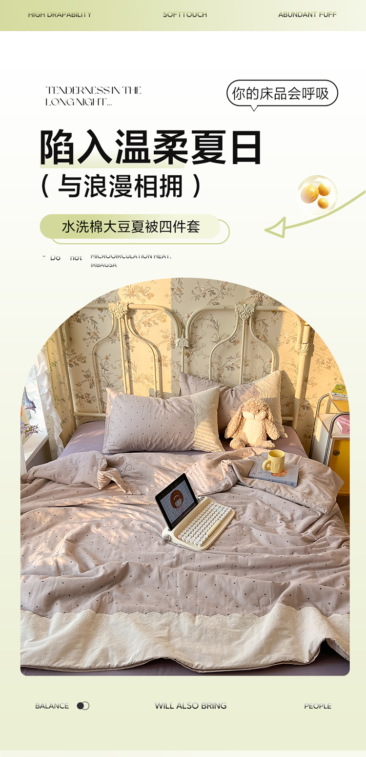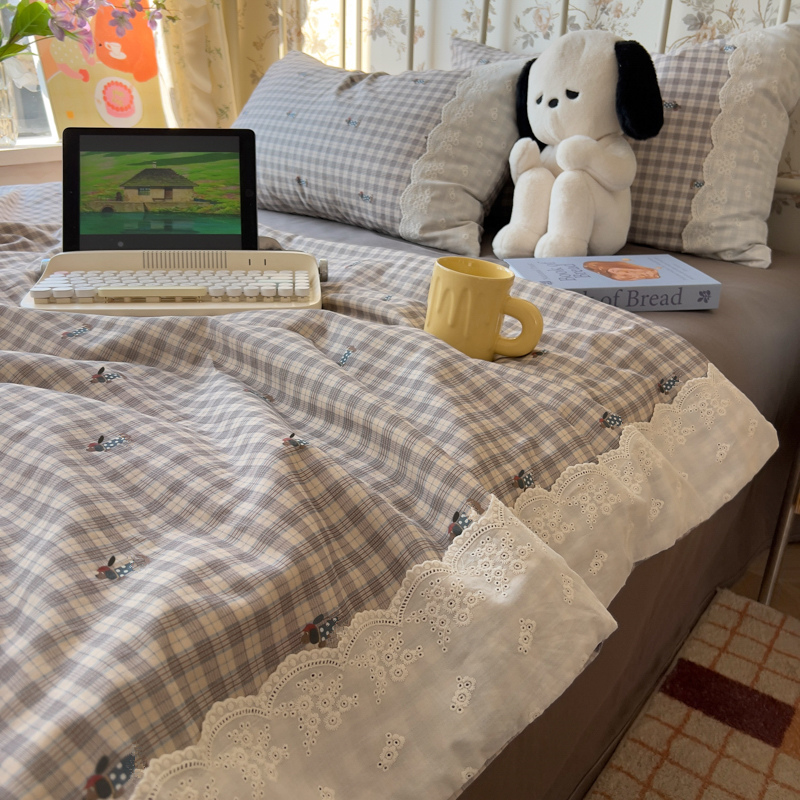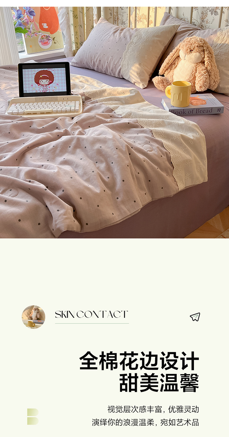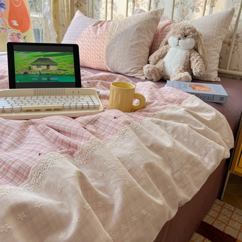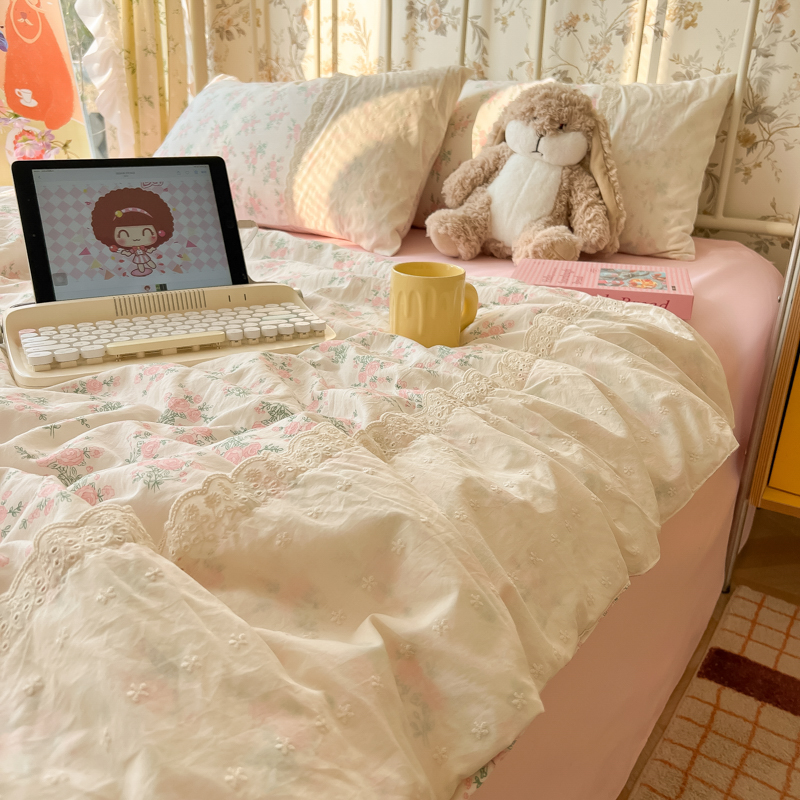 레이스 여름 이불 순면 세탁기로 세탁 가능한 에어컨 이불 4피스 세트 어린이용 싱글 여름 얇은 이불 코어스토어 가기